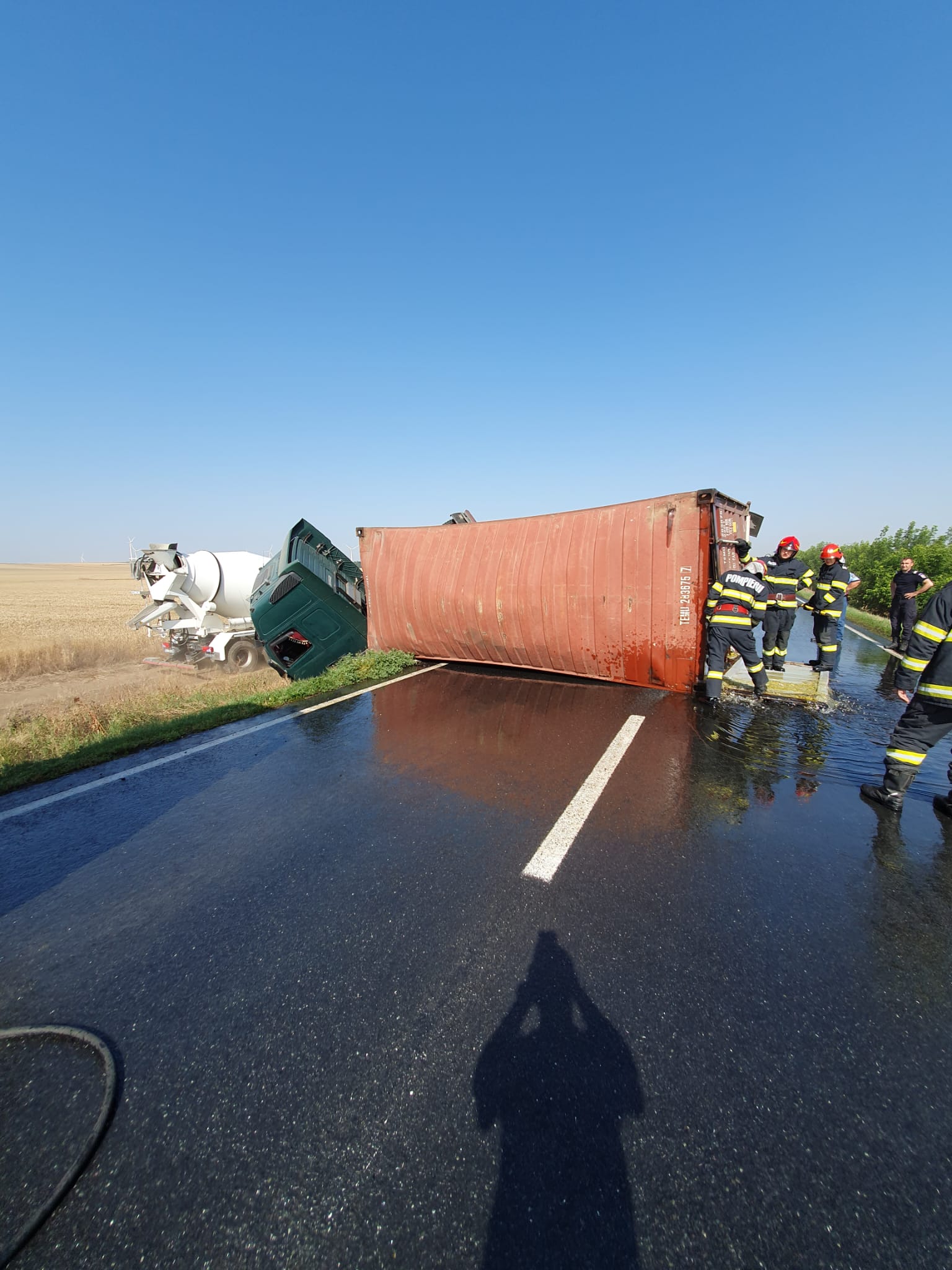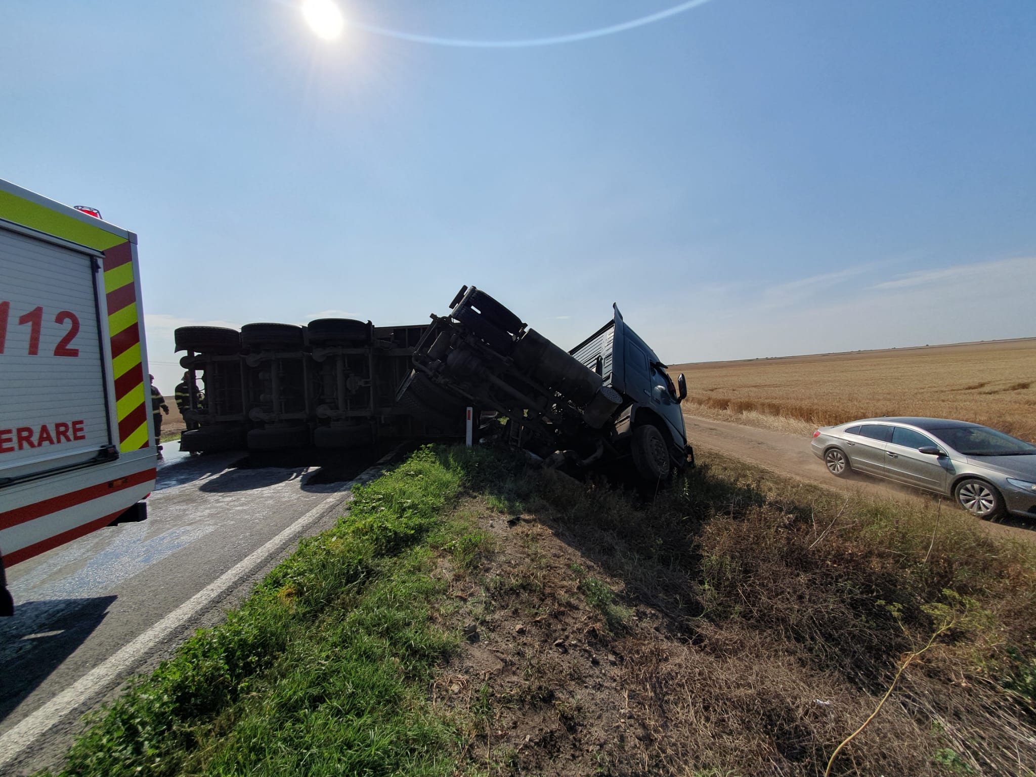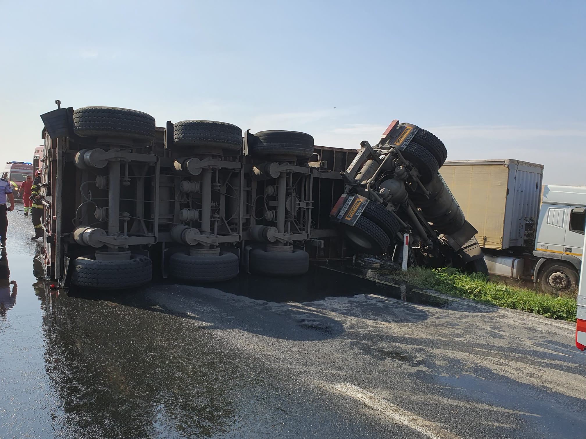 CONSTANŢA: Un autotren încărcat cu ulei alimentar s-a răsturnat pe DN 2A; circulaţia este îngreunată