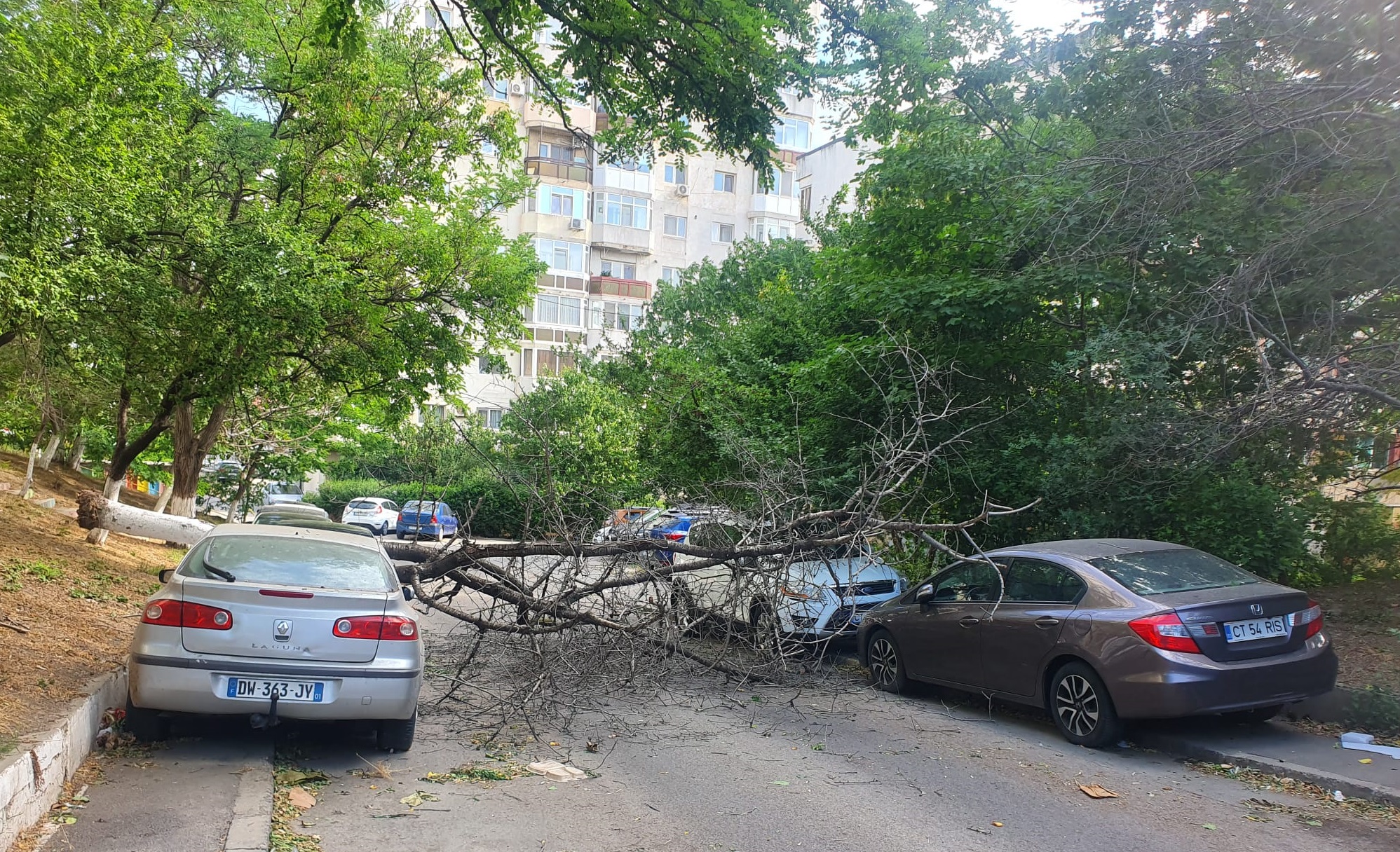 Echipele au intervenit pentru îndepărtarea de pe carosabil/alei/mașini a copacilor sau crengilor căzute sau în pericol de prăbușire pe b-dul Tomis, la intersecția cu b-dul Aurel Vlaicu, strada Interioară 2, aleea Viitorului nr.4, aleea Capidava nr.4, b-dul Aurel Vlaicu nr.21, strada Hatman Arbore nr. 30, strada Mihai Viteazu, colț cu strada Sarmisegetuza, strada Flămânda nr. 40, strada Mărțișorului bloc FC1, aleea Murelor bloc BC3, strada I.G. Duca bl. L42 și L79, b-dul Tomis nr. 217, strada Primăverii nr 19, aleea Brândușelor nr. 1 bl Z1, strada Theodor Speranția nr 7 și în stațiunea Mamaia, în zona hotelurilor Apolo, Perla și Flora, Vila Cara.