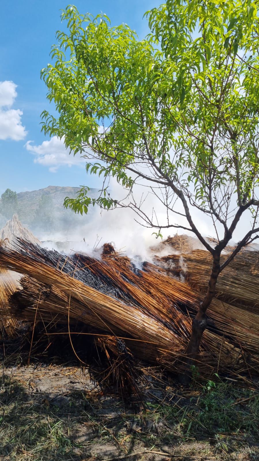 La sosirea salvatorilor, incendiul se manifesta cu flacără deschisă și cu degajări mari de fum la aproximativ 1200 de snopi de stuf, o semiremorcă și un utilaj de recoltat stuf, cu posibilitatea de extindere la alte obiective de interes din apropiere.