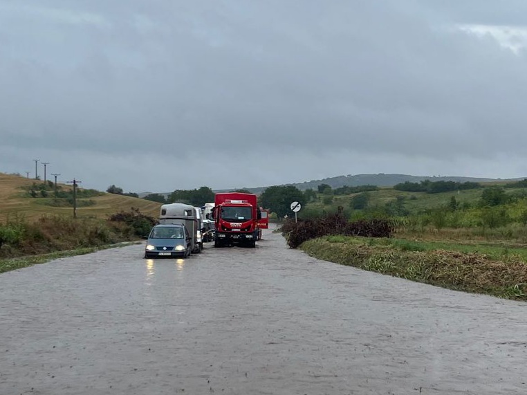 Pompierii ISU Delta Tulcea au ajuns în localitatea Horia, unde, în jurul orei 12,00, din cauza unei viituri, traficul rutier pe DN 22 D a fost oprit pe ambele sensuri și multe autovehicule au fost blocate.