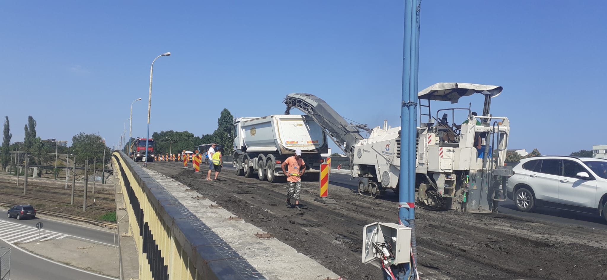 Se lucrează pe partea cu sensul de mers spre Km 4-5, iar traficul se desfășoară în ambele, direcții, pe câte o bandă, pe partea cu sensul de mers spre Gară.