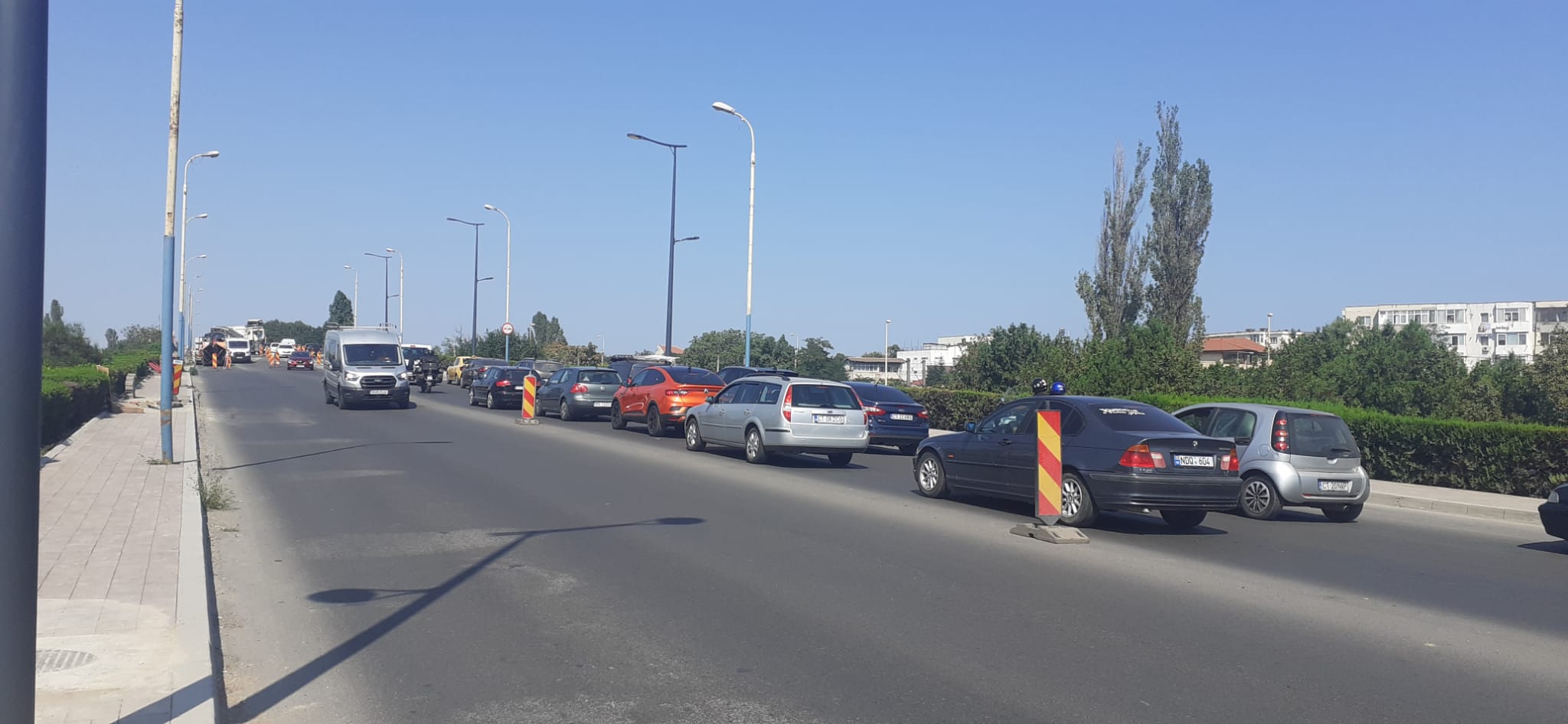 Se circulă bară la bară pe Podul de la Doraly de pe Șoseaua Mangaliei, pe sensul spre ieșirea din Constanța.