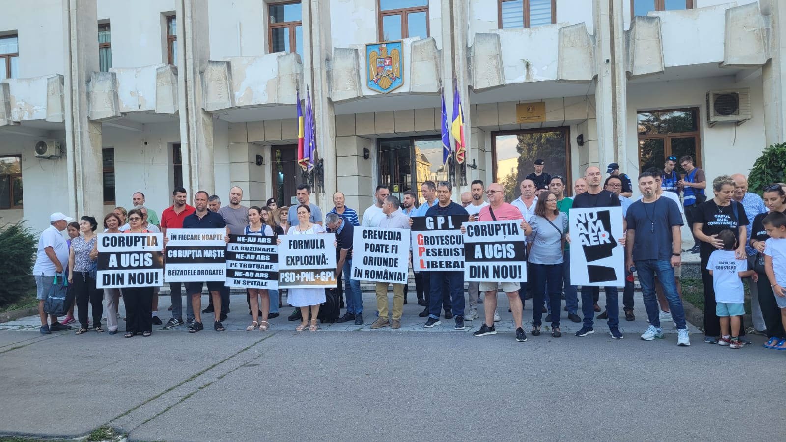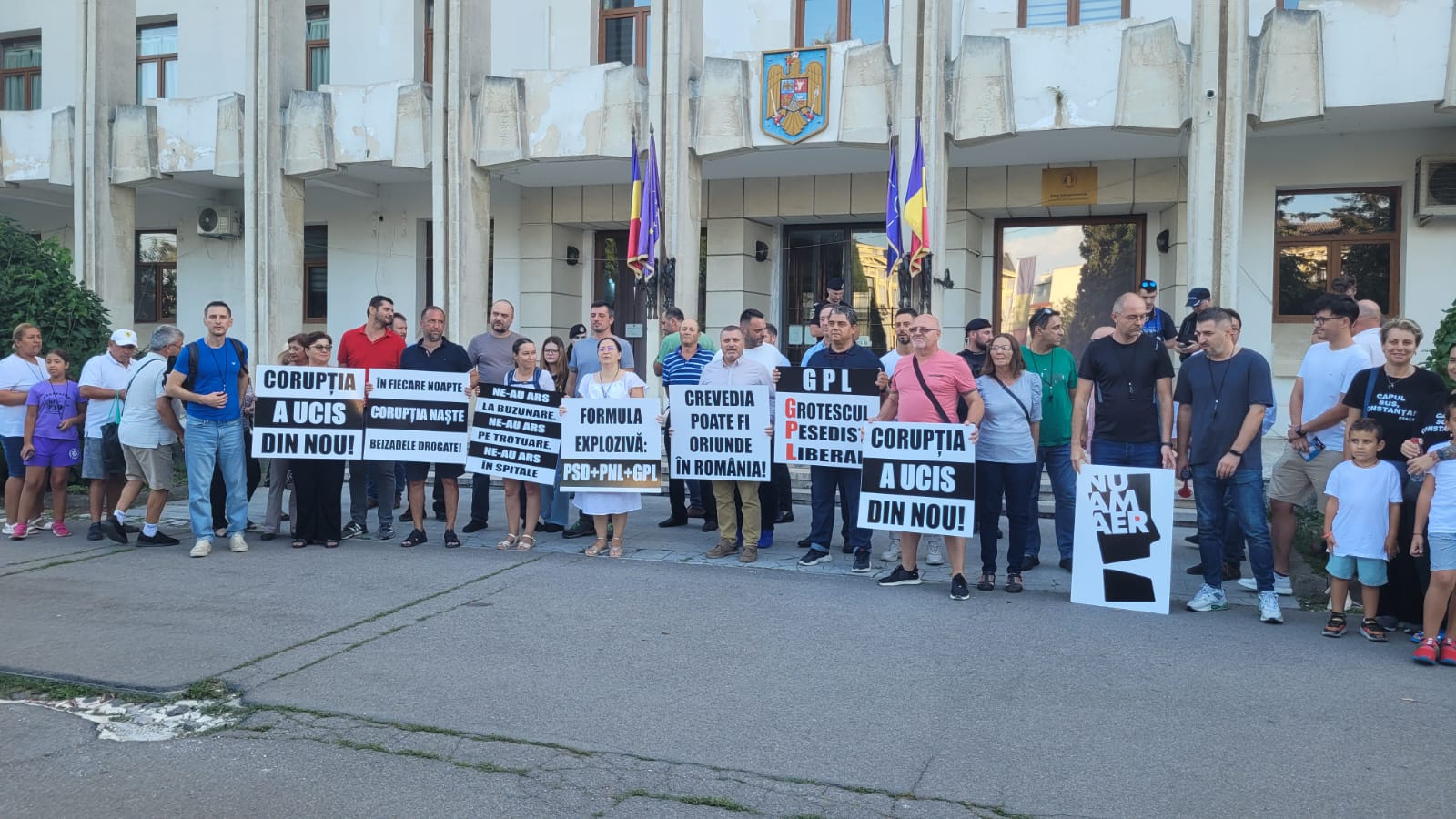 CONSTANȚA/FOTO,VIDEO: Acțiune de protest în fața Prefecturii – ”Corupția a ucis din nou!”