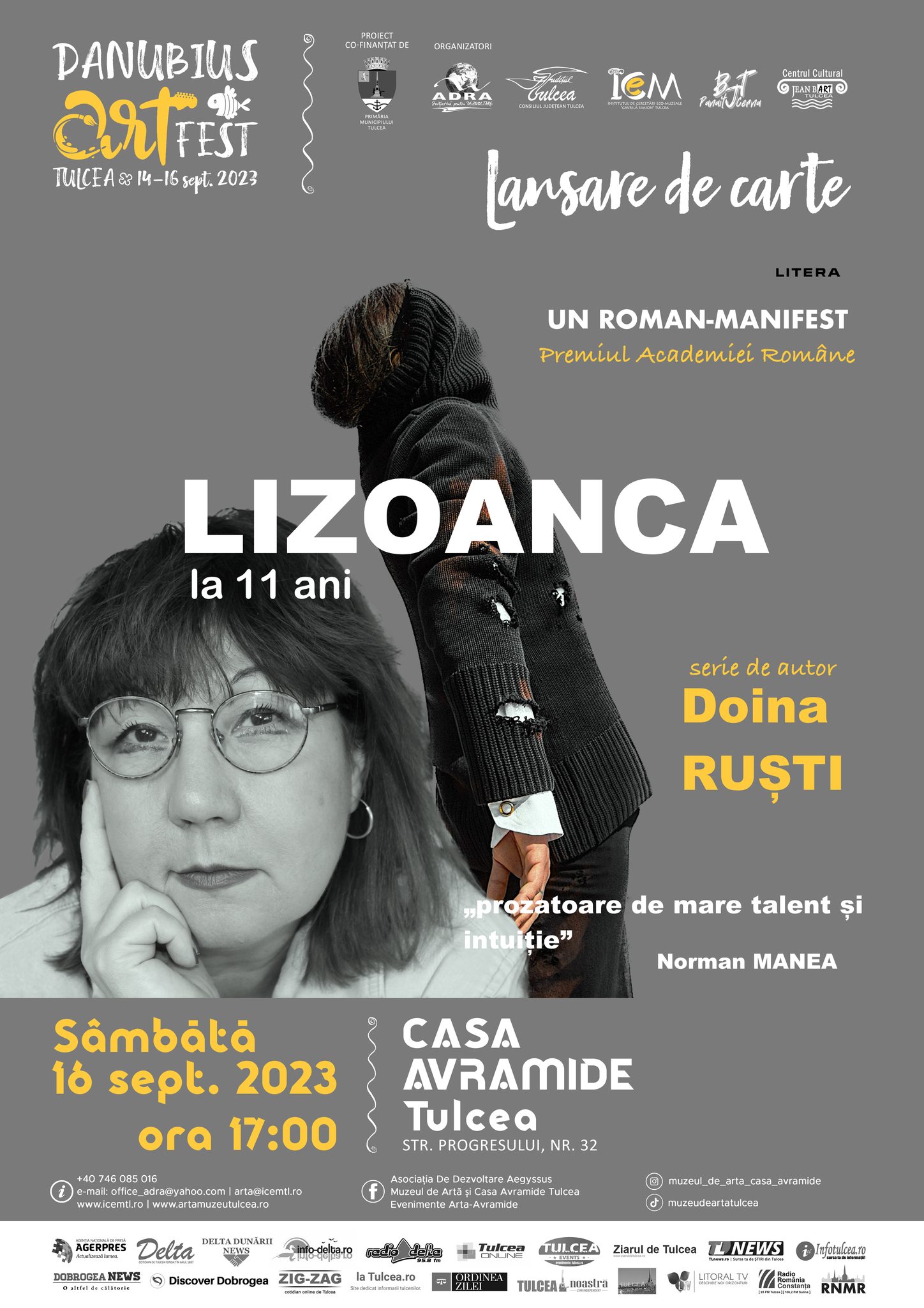 17:00 – Lansare de carte DOINA RUȘTI – romanul LIZOANCA LA 11 ANI