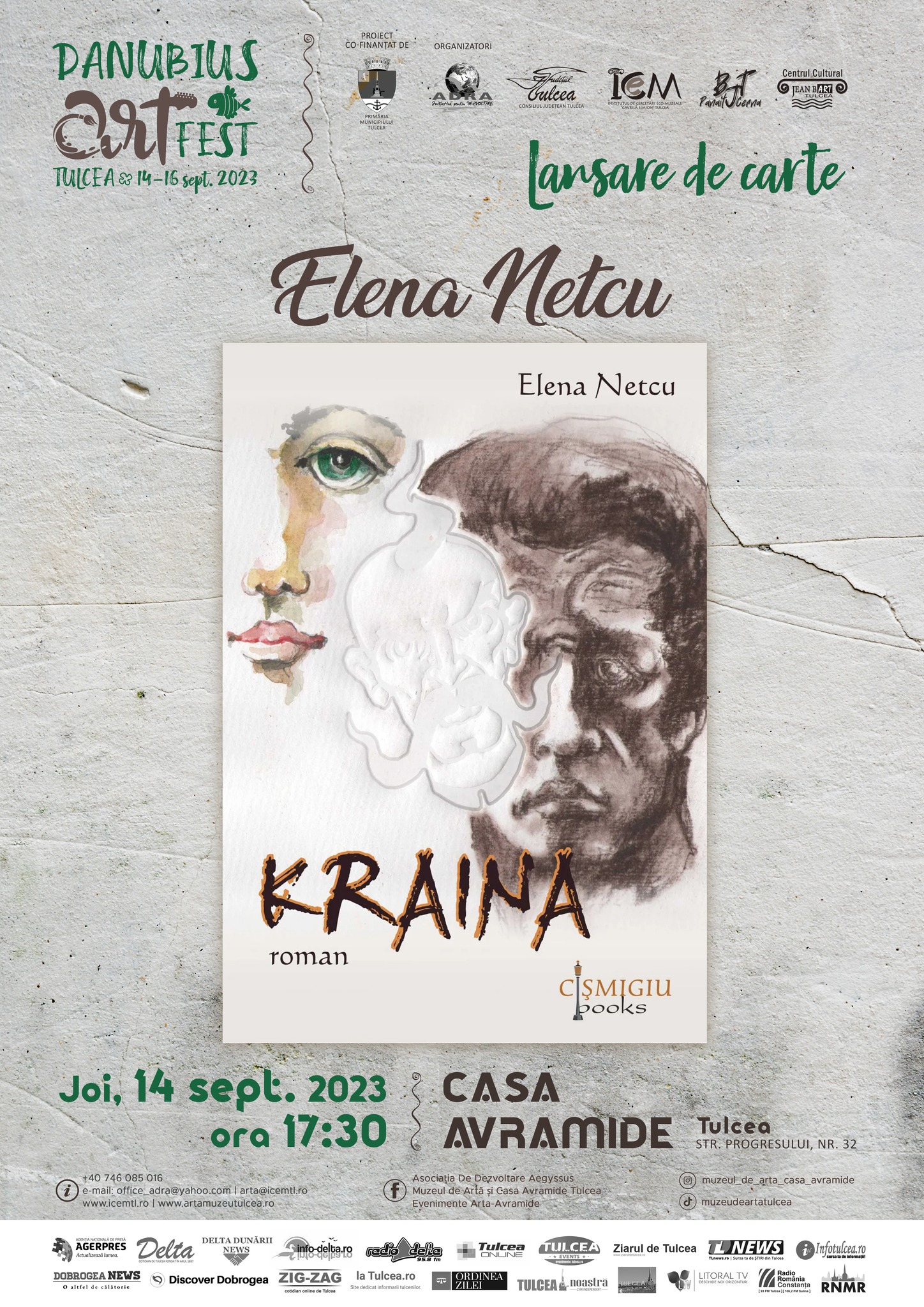Asociația de Dezvoltare Regională „Aegyssus”, în parteneriat cu Institutul de Cercetări Eco-Muzeale „Gavrilă Simion” și Biblioteca Județeană „Panait Cerna” Tulcea anunță programul evenimentelor ce vor avea loc la Casa Avramide, începând de joi, 14 septembrie și până sâmbătă, 16 septembrie, în cadrul festivalului „Danubius Art FEST 2023”, proiect cofinanțat de Primăria Municipiului Tulcea.
