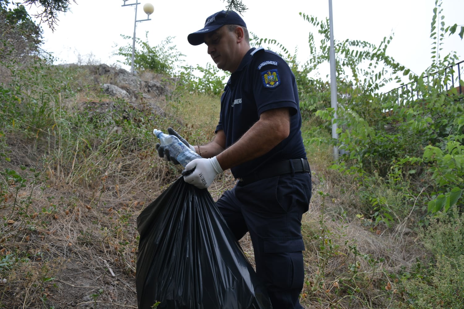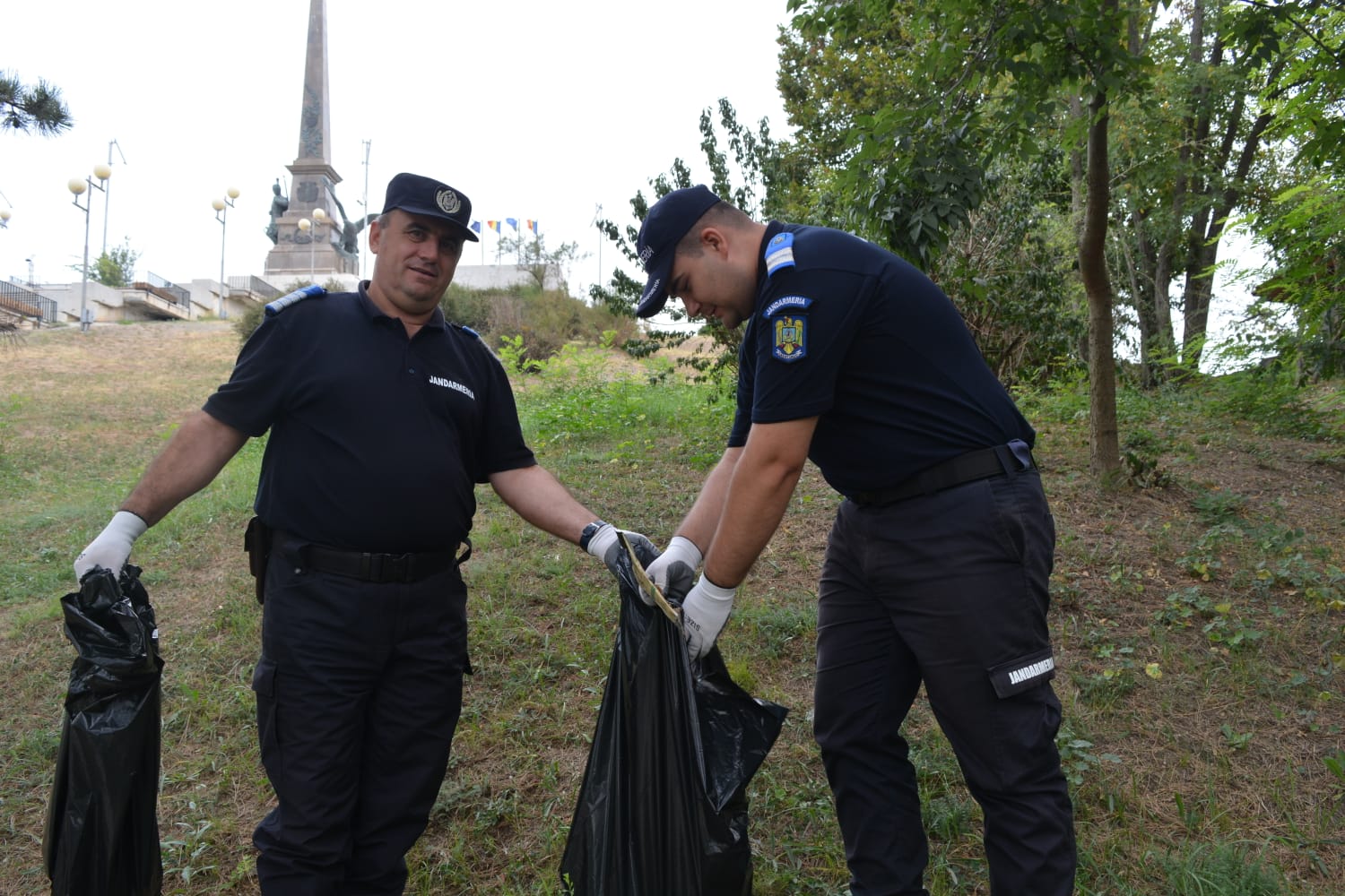 Încă de la prima oră a dimineții, jandarmii, dotați cu saci și mănuși, s-au alăturat celorlalți voluntari care au aceeași misiune: o lume cu mai puține deșeuri.