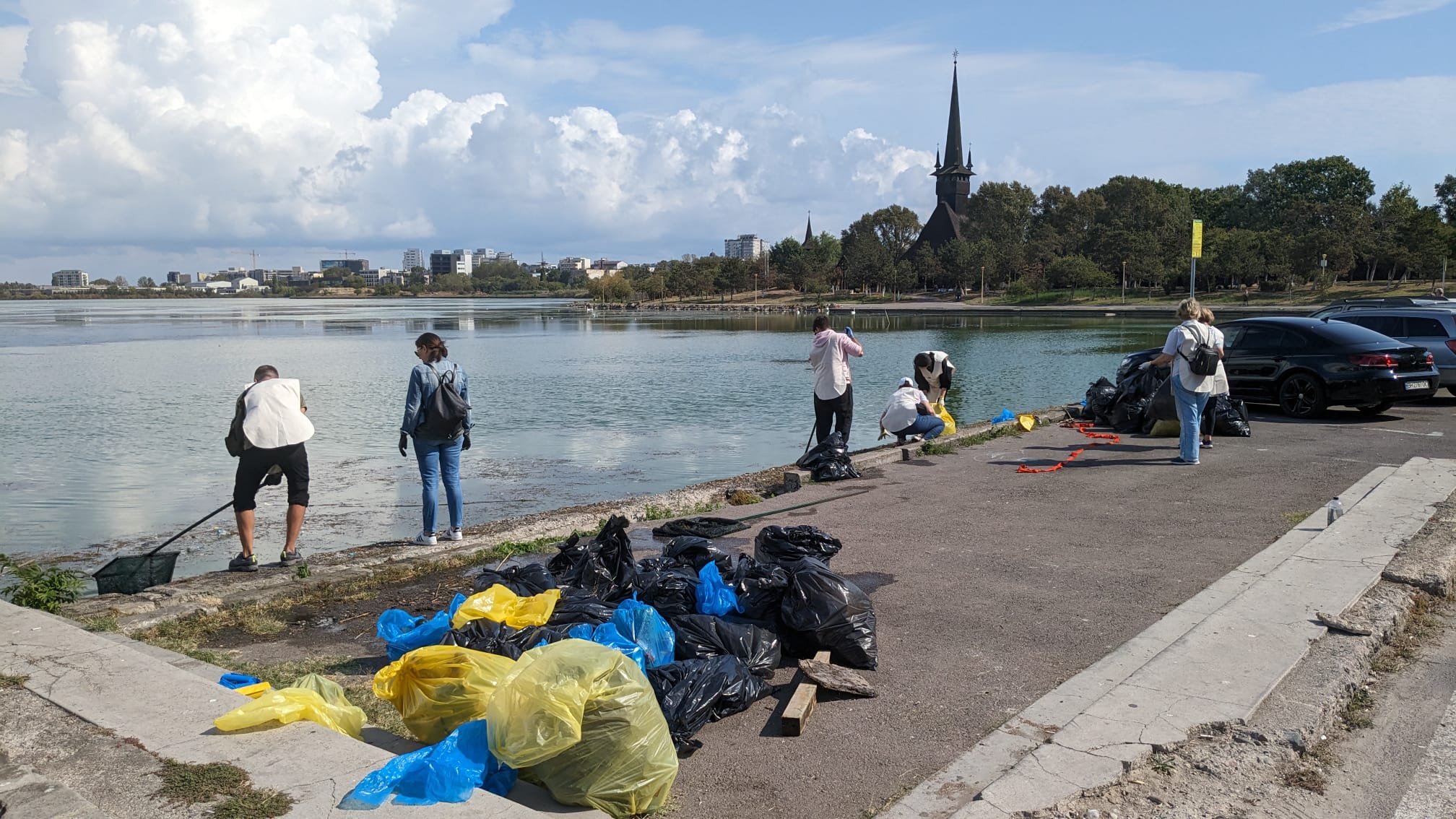 “Da, ne-am strâns astăzi, aici, tocmai pentru a mai arăta încă o dată în plus că este nevoie de măsuri. Este nevoie de măsuri de prevenție, pentru că a trata la nesfârșit nu este o soluție. Prevenția pleacă pe de o parte, de la un sistem în care oamenii să aibă loc unde și să-și arunce deșeurile. Prevenția pleacă de la un sistem în care monitorizăm ceea ce face omul, iar dacă omul este împotriva naturii, să-l putem sancționa. Și nu în ultimul rând, prevenția pleacă de la exemple de bună practică, pe care, da, le putem face, dar controla. Nu putem să venim în fiecare an, de două, de trei ori pe an aici, ca să strângem nişte deșeuri. Încă o dată, trebuie îngrijit lacul, pentru că altfel el se transformă într-o groapă de gunoi, într-o groapă de iarbă care miroase foarte urât și care, până la urma urmei nu este estetic pentru oraş. Din punct de vedere al locuri de aruncare a deșeurilor există, doar că, din păcate, sunt insuficiente. Trebuie să gândim smart, în sensul în care degeaba pun coșuri de gunoi, atâta cât timp am foarte mulţi pescăruși care vin în fiecare seară, scormonesc, s-au învățat deja să scormonească între gunoaie și să lase resturile pe margine și să mănânce din resturile alimentare ale supermarket-urilor sau ale fastfood-urilor din zonă”, spune Andrei Coșuleanu.