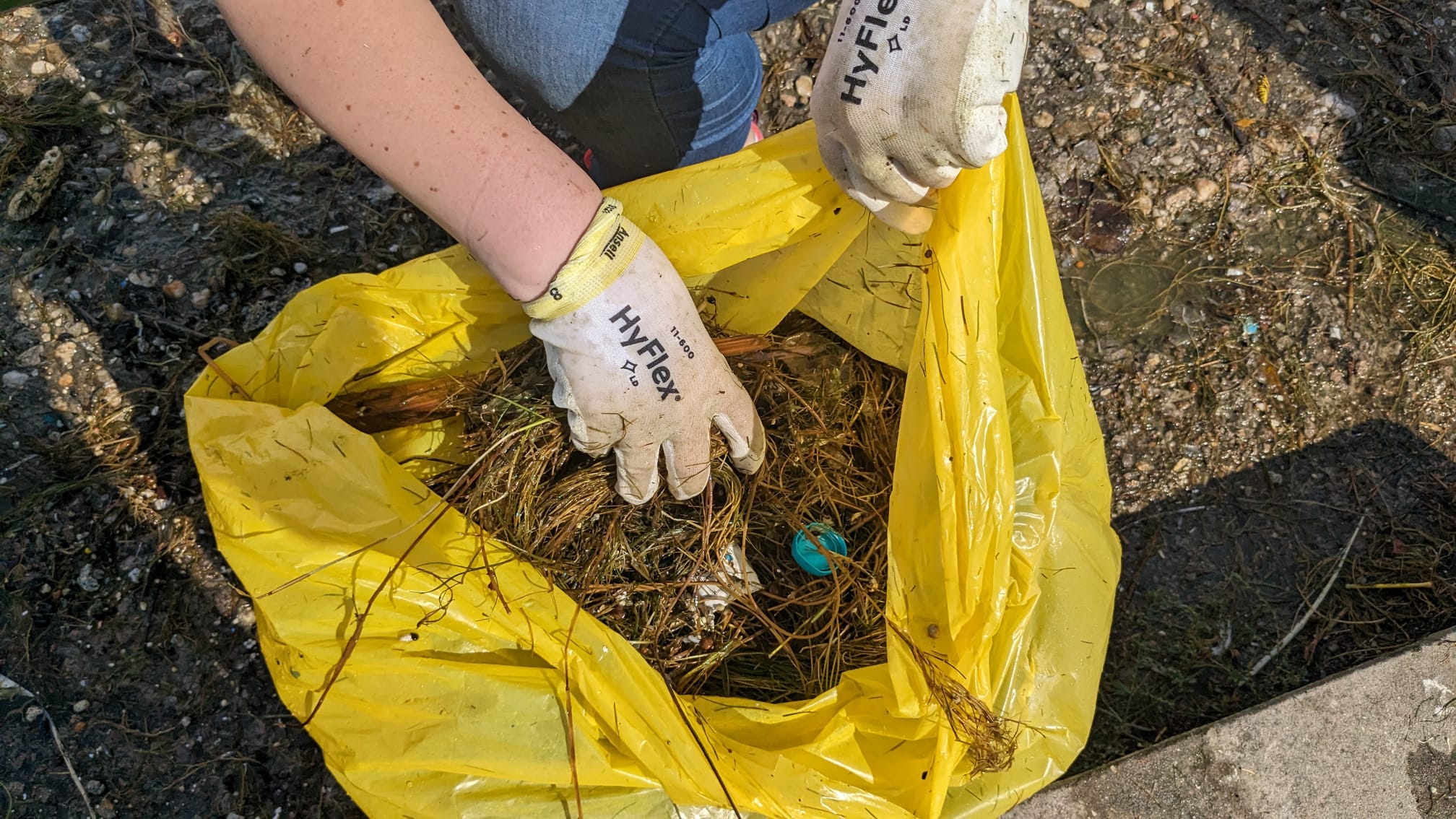 „Am găsit iarbă, buruieni şi multe gunoaie. Mult plastic, metale”, spune un voluntar.
