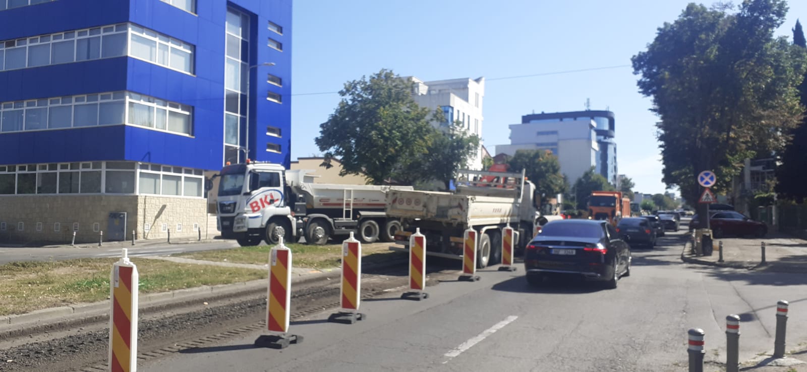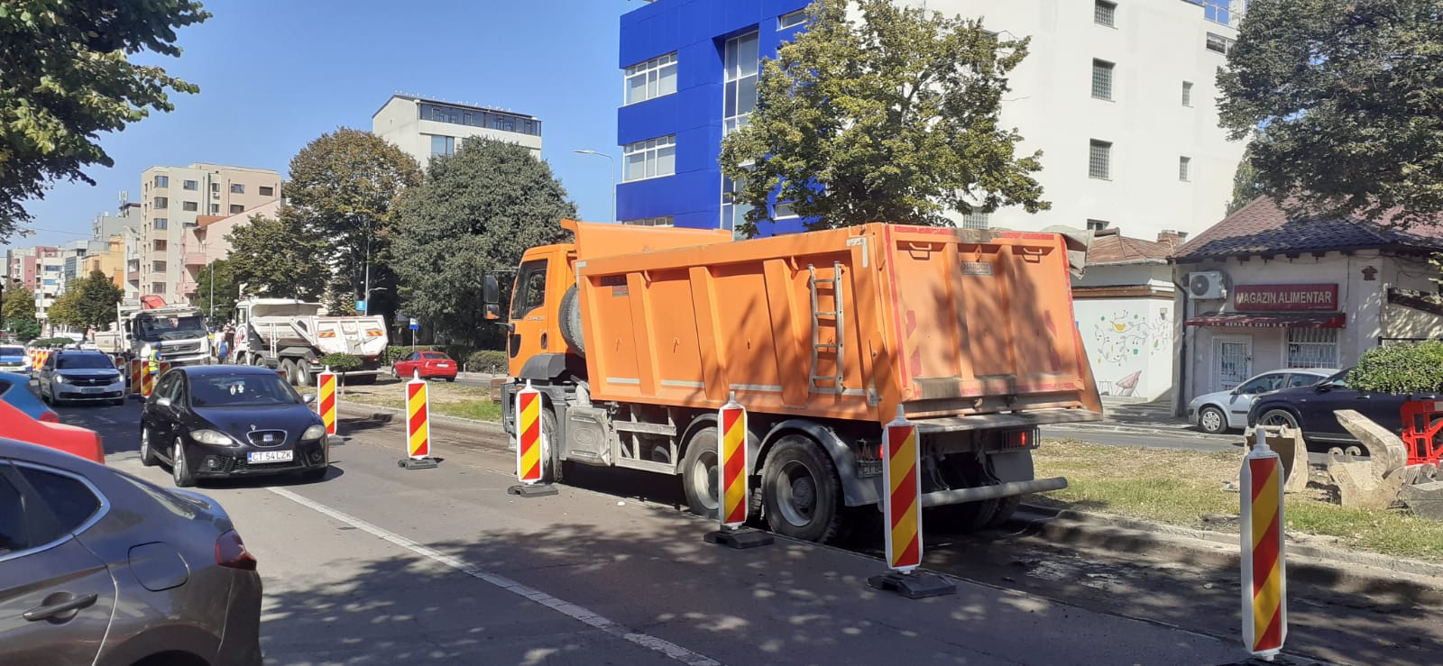 Circulația se desfășoară cu mare dificultate pe Bulevardul Mamaia, pe sensul de mers dinspre Delfinariu spre oraș. Motivul: lucrările RAJA în zona intersecției cu strada Ciprian Porumbescu, unde banda de lângă scuar a fost deja frezată.