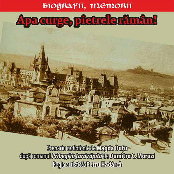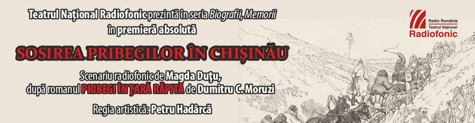 Teatrul Național Radiofonic prezintă în premieră absolută, în perioada 26 septembrie – 17 octombrie 2023, patru spectacole realizate după romanul Pribegi în ţară răpită de Dumitru C. Moruzi: Sosirea pribegilor în Chișinău (26 septembrie 2023), Străini în țara lor! (3 octombrie 2023), Iașul sub Cuza-Vodă (10 octombrie 2023), Apa curge, pietrele rămân! (17 octombrie 2023). Scenariile radiofonice: Magda Duțu. Regia artistică: Petru Hadârcă. Spectacolele sunt realizate în cadrul proiectului Biografii, memorii și vor fi difuzate la Radio România Cultural, de la ora 19:00.