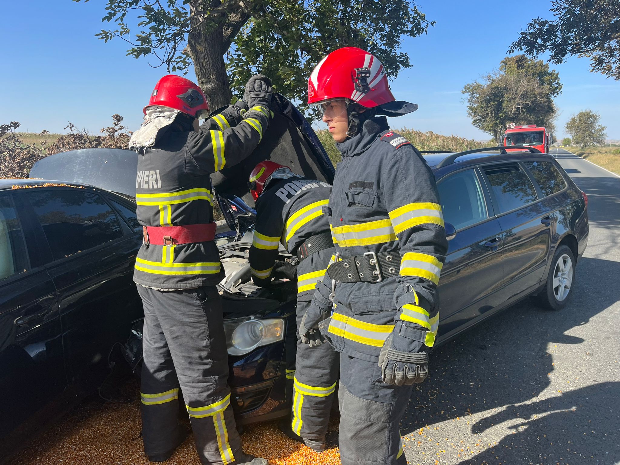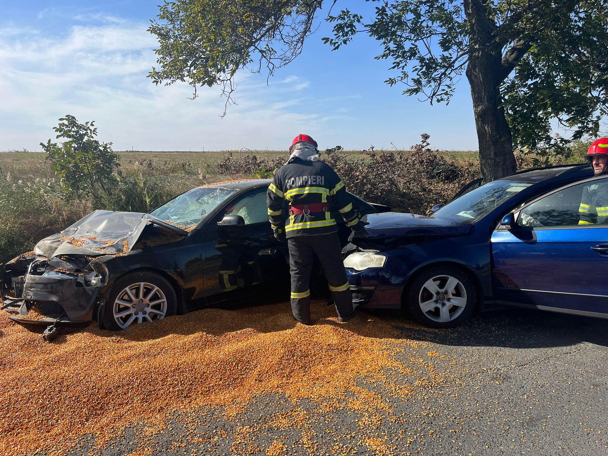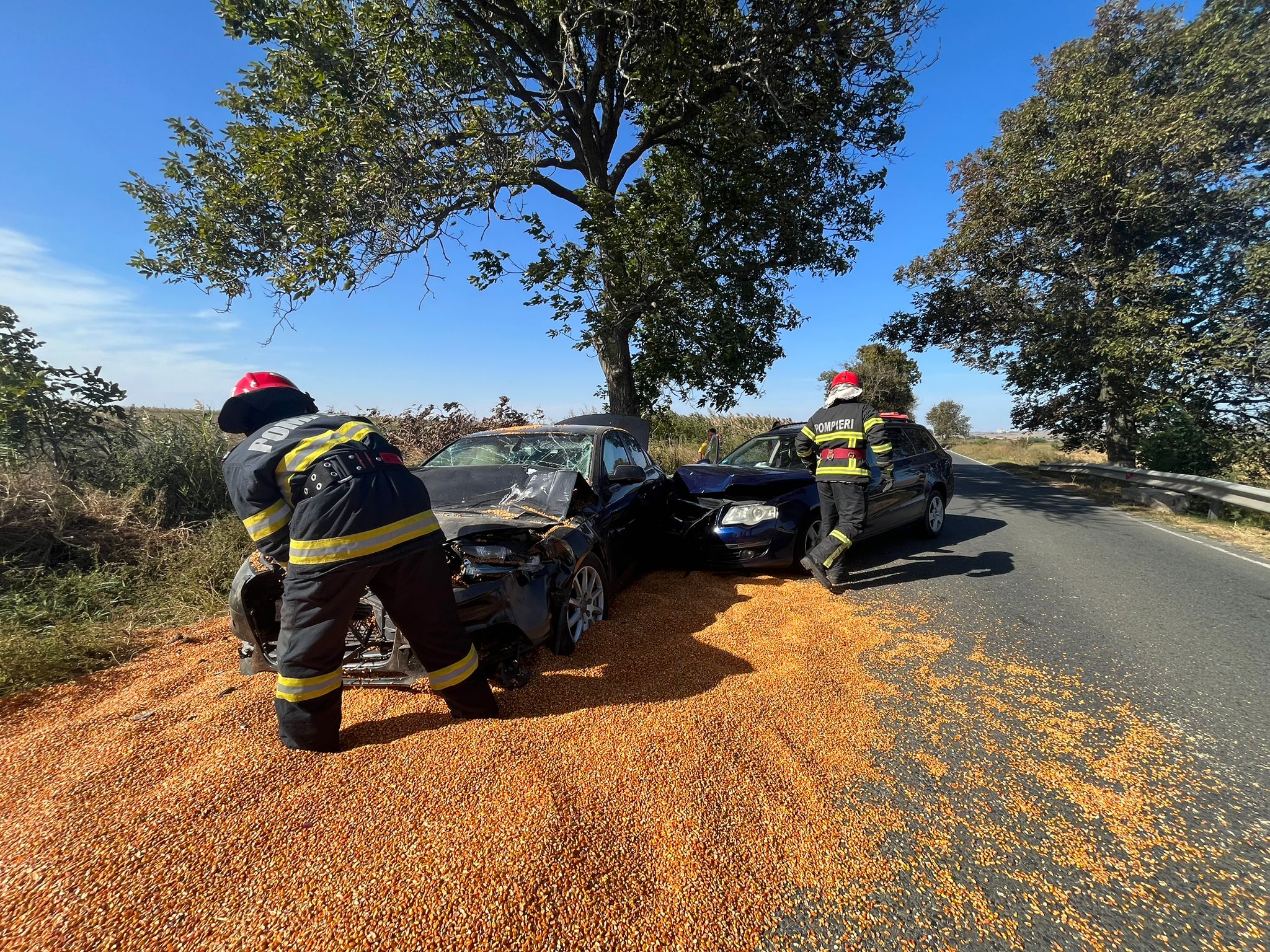 În urmă cu scurt timp, pompierii Detașamentului Tulcea au intervenit în apropiere de localitatea Mihail Kogălniceanu, pe DN 22, la un accident rutier în care au fost implicate două autoturisme și o autoutilitară încărcată cu porumb.