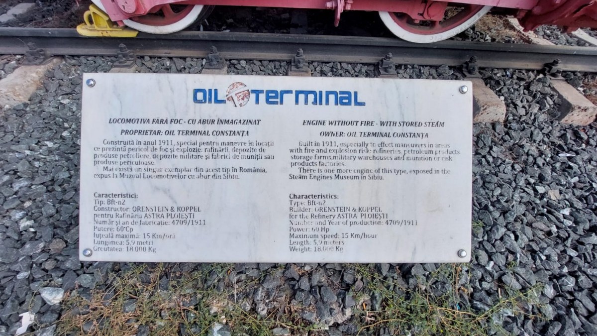 Locomotiva expusă în Gara CF Constanța a fost fabricată pentru rafinăria Astra Ploieşti şi a fost folosită pentru deplasarea vagoanelor – cisternă destinate produselor descărcate de pe navele ce ajungeau în Portul Constanţa, în zona depozitelor care în prezent aparțin societăţii Oil Terminal.