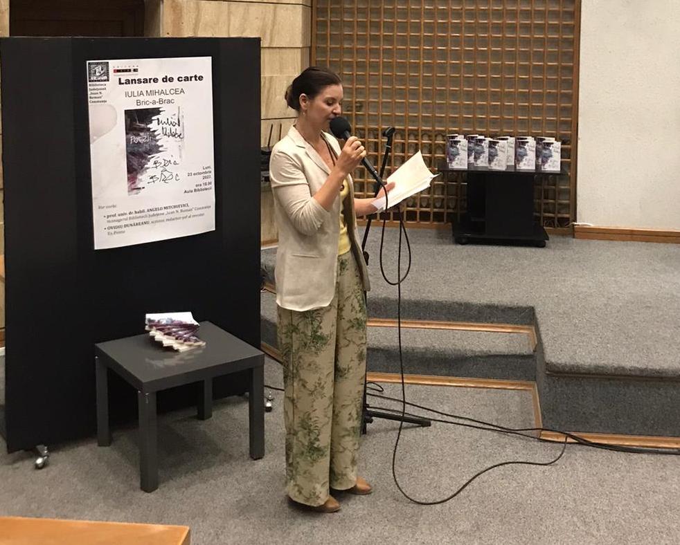 Aula Bibliotecii Județene Constanța a găzduit, luni, 23 octombrie 2023, lansarea volumului de poezii „Bric-à-Brac”, semnat de poeta Iulia Mihalcea (Editura Eikon, 2023).