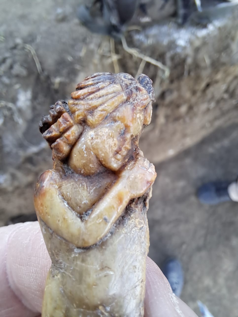 Pe lângă statuetă au mai fost descoperite și alte obiecte, foarte multă ceramică romană, în jur de 15 monede din bronz, precum și două opaițe din lut, două lămpi de iluminat din lut, și vedem ce descoperiri o să mai facem în zilele următoare, pentru că cercetarea nu s-a terminat în locația respectivă.