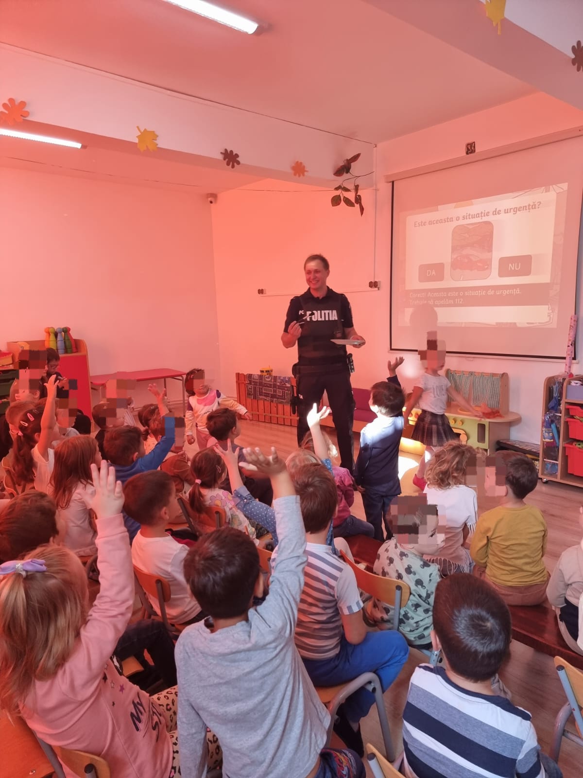 Copiii s-au arătat entuziasmați și s-au întrecut în a răspunde întrebărilor polițiștilor, mai ales în ceea ce privește circulația rutieră. Fiecare dintre ei a dorit să arate că știe cum  să traverseze strada în condiții de siguranță sau că trebuie să poarte centura atunci când se deplasează cu un vehicul.