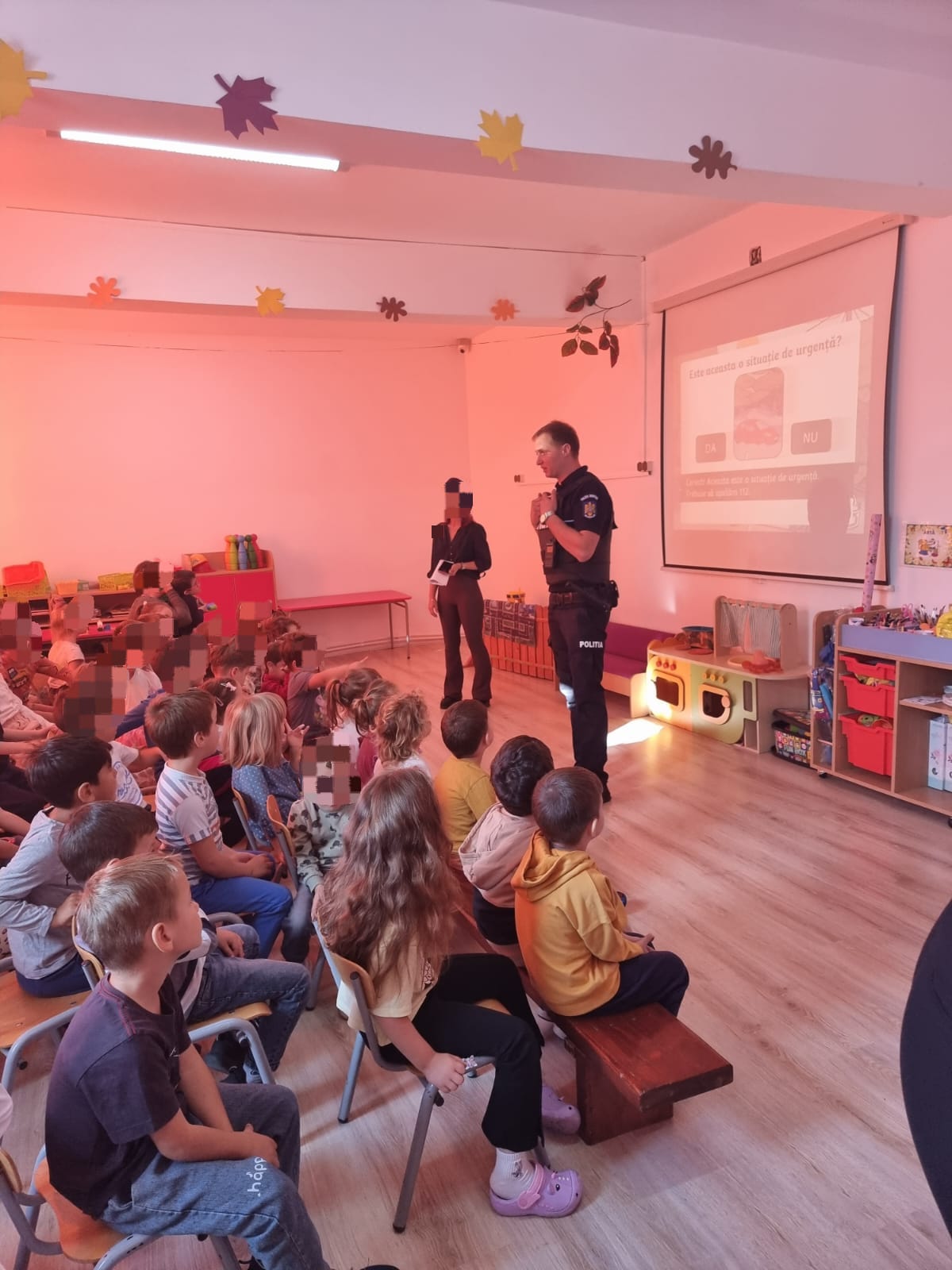 Totodată, polițiștii le-au vorbi micuților despre cum să evite anumite situații de pericol, respectiv să nu stea de vorbă cu persoanele străine, să nu primească de la acestea cadouri, dulciuri, băuturi, să nu urce în autoturisme pe care nu le cunosc. Nu în ultimul rând, au fost învățați cum să procedeze în cazul în care se pierd, dar și că în situații de pericol trebuie să sune la numărul de urgență 112.