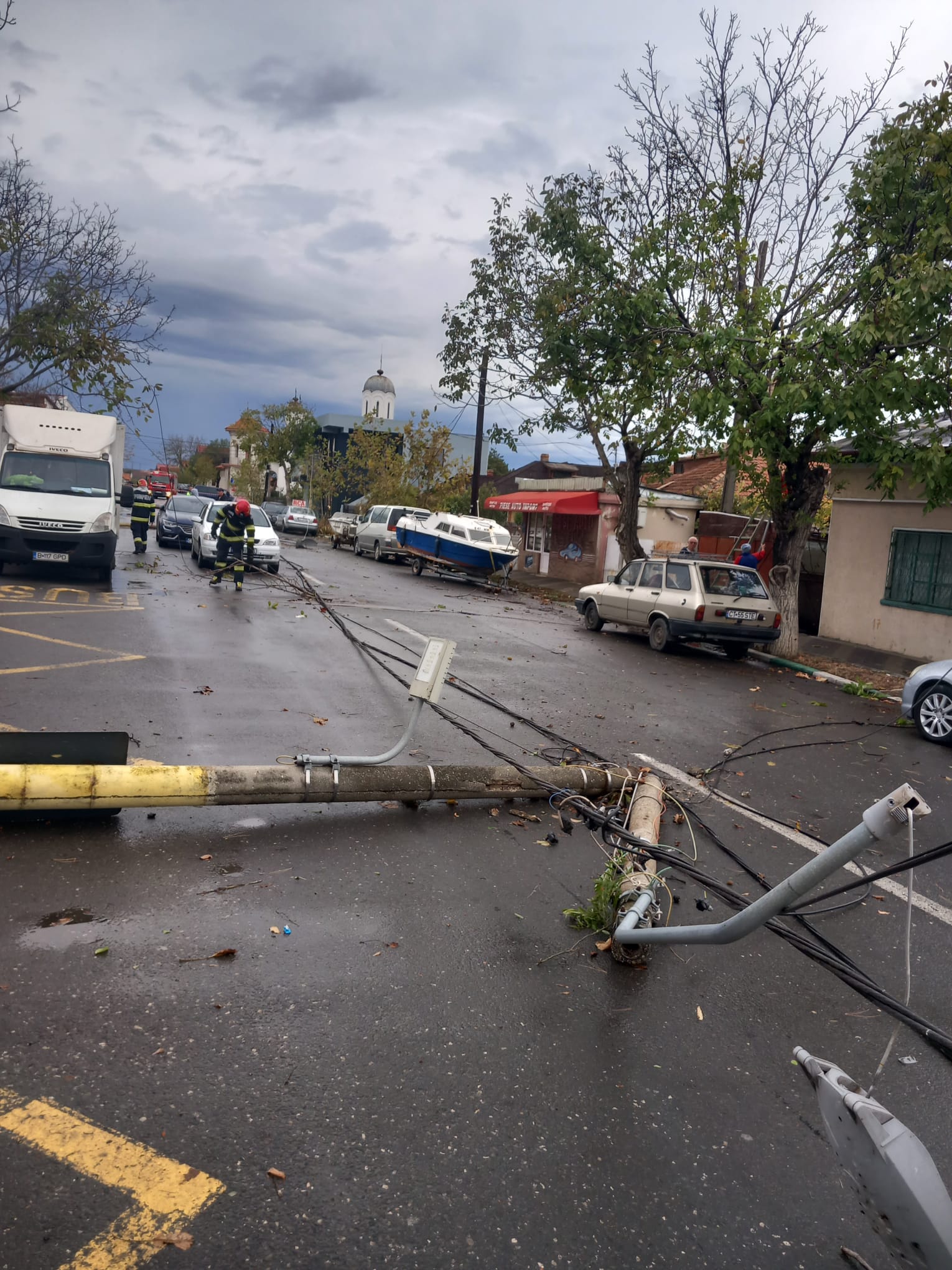 Până la aceasta oră, am avut peste 35 de apeluri prin 112, din care 30 de apeluri pentru copaci căzuți pe carosabil, 3 stâlpi de electricitate afectați, un acoperiș al unei case și un horn. Din centralizarea de până la aceasta oră, au fost avariate 4 autoturisme. Misiunea este în dinamică, colegii sunt pe teren și lucrează pentru înlăturarea efectelor negative. Voi reveni cu un bilanț la încheierea misiunilor.