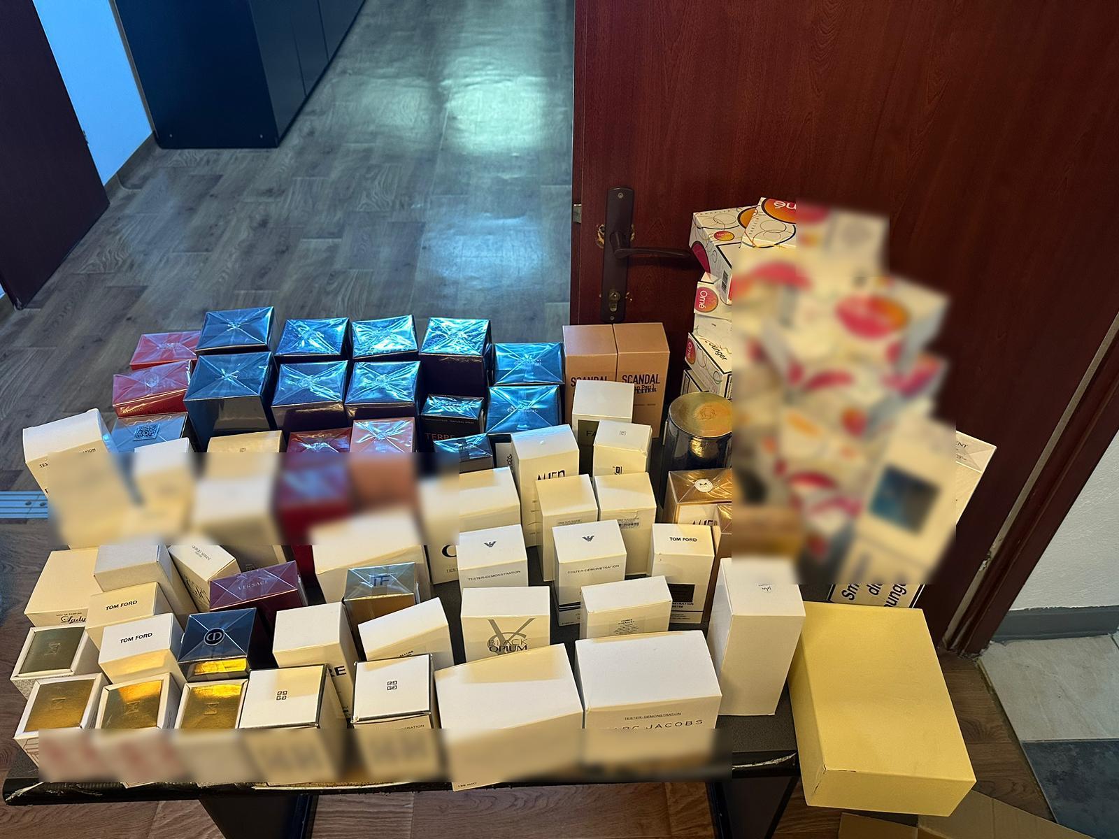 După interceptarea și legitimarea persoanei, s-a efectuat și controlul bagajului, în urma căruia au fost gasite un număr total de 59 parfumuri ce purtau însemnele unor mărci cunoscute, susceptibile a fi contrafăcute și a aduce atingere dreptului de proprietate intelectuală, 3 pachete ce conțineau 71 piese metalice de culoare galbenă cu o greutate totală de 261,73 grame și 170 pachete de țigări netimbrate.