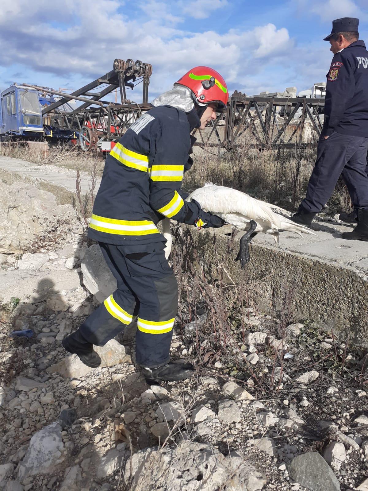 CONSTANȚA/FOTO: O lebădă blocată între stânci a fost salvată de pompierii ISU