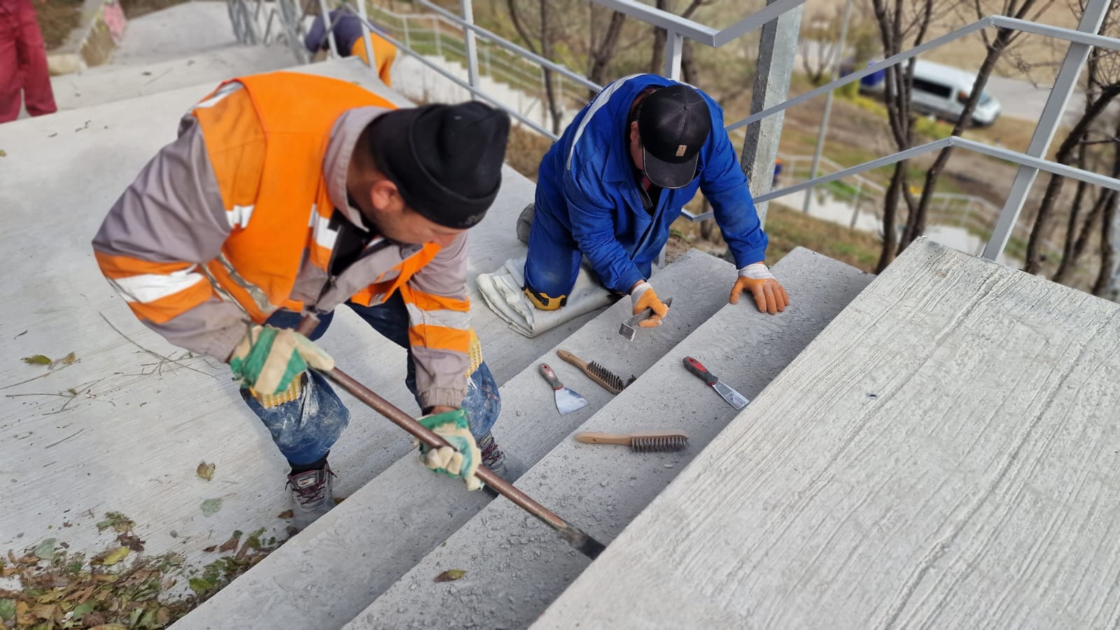 • Scările de acces spre plaja Modern, din zona străzii Vasile Alecsandri, sunt recondiționate prin adăugarea unor confecții metalice după care se va așterne armătura și sunt returnate treptele cu beton.