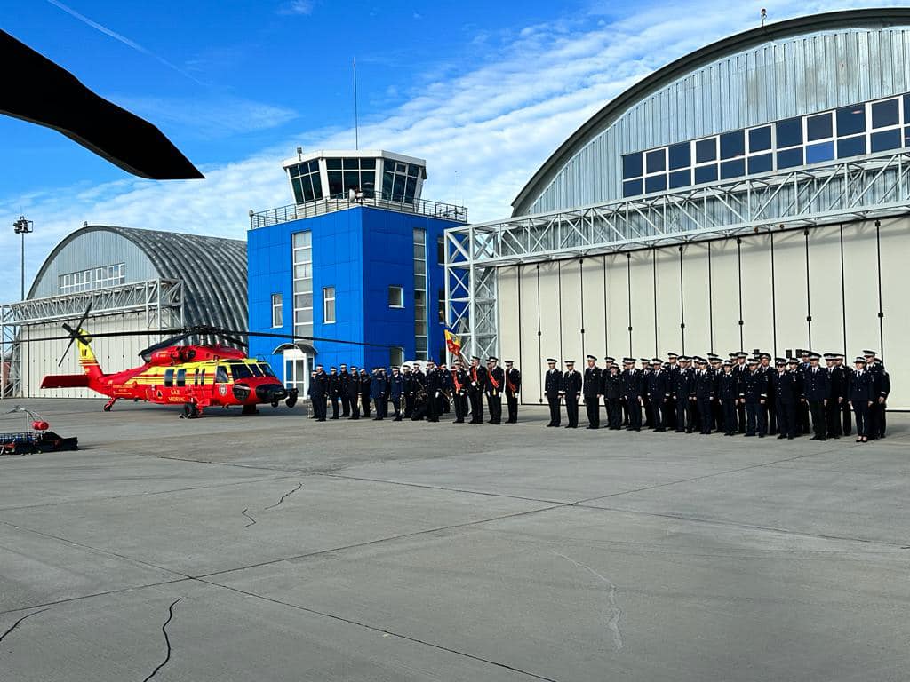La baza Inspectoratului General de Aviație al MAI a avut loc, astăzi, evenimentul prilejuit de intrarea în dotarea flotei aeriene a IGAV, a 4 elicoptere Sikorsky S-70M Black Hawk, destinate managementului situaţiilor de urgenţă.
