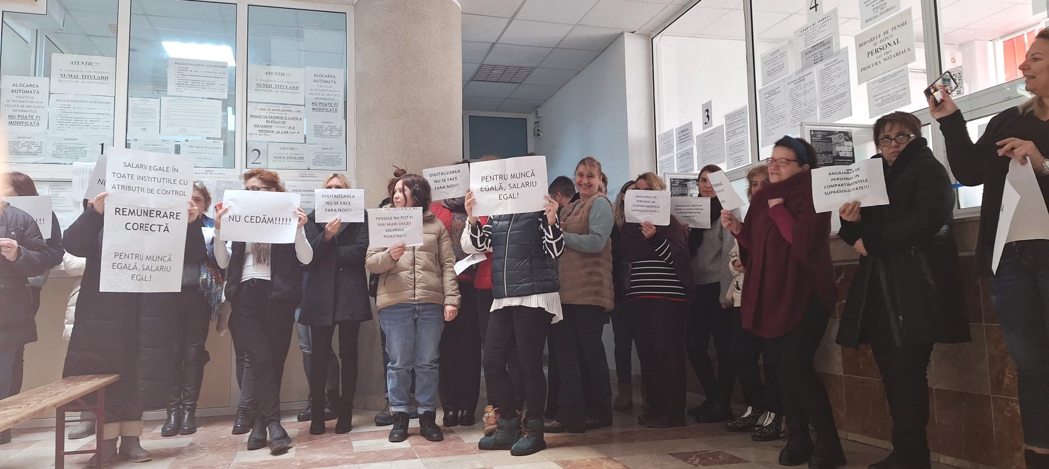 Angajații de la Casele de Pensii, AJPIS, la AJOFM și ITM din toată țara au intrat, de astăzi, în grevă generală pe termen nelimitat, nemulțimiți de salariile mici, de neplata orelor suplimentare și de condițiile dificile de lucru.