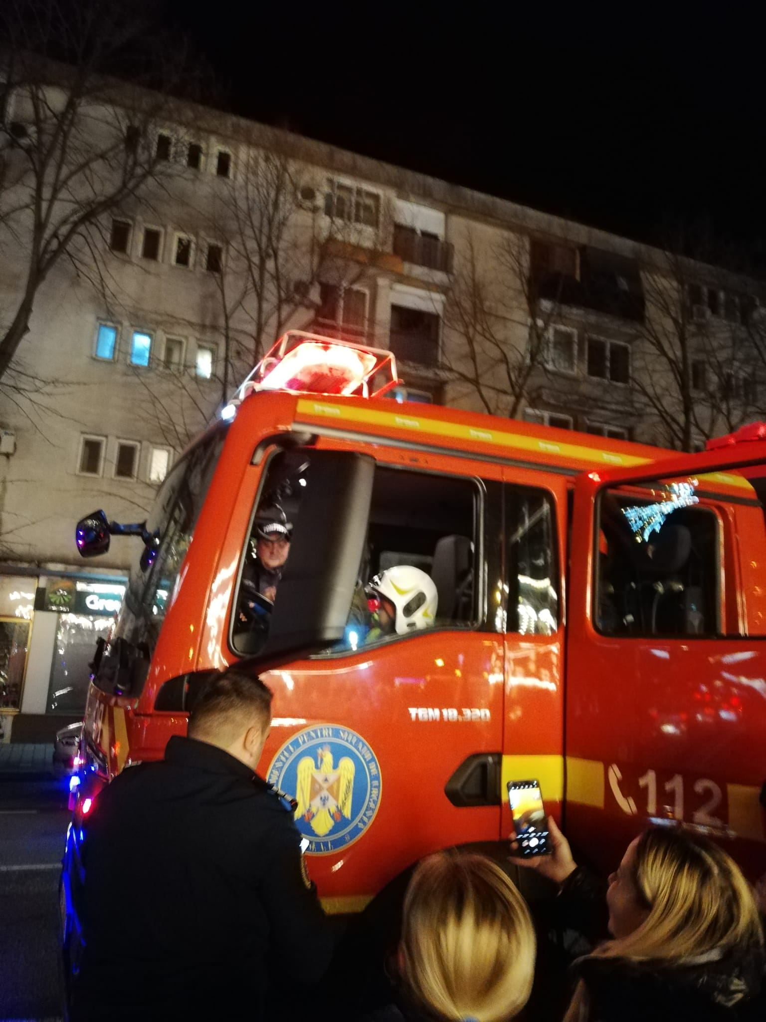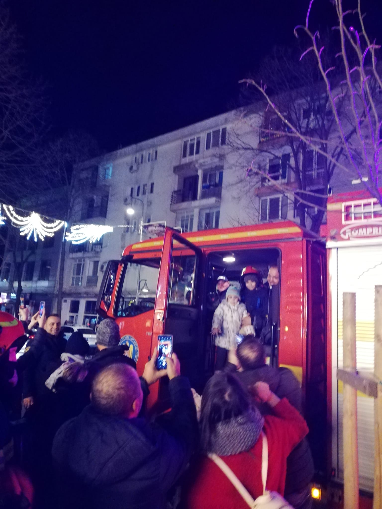 Gest deosebit al pompierilor constănțeni: după spaima prin care au trecut copiii blocați în roata panoramică, salvatorii le-au readus zâmbetul pe chipuri, prezentându-le autospecialele folosite la intervenție.