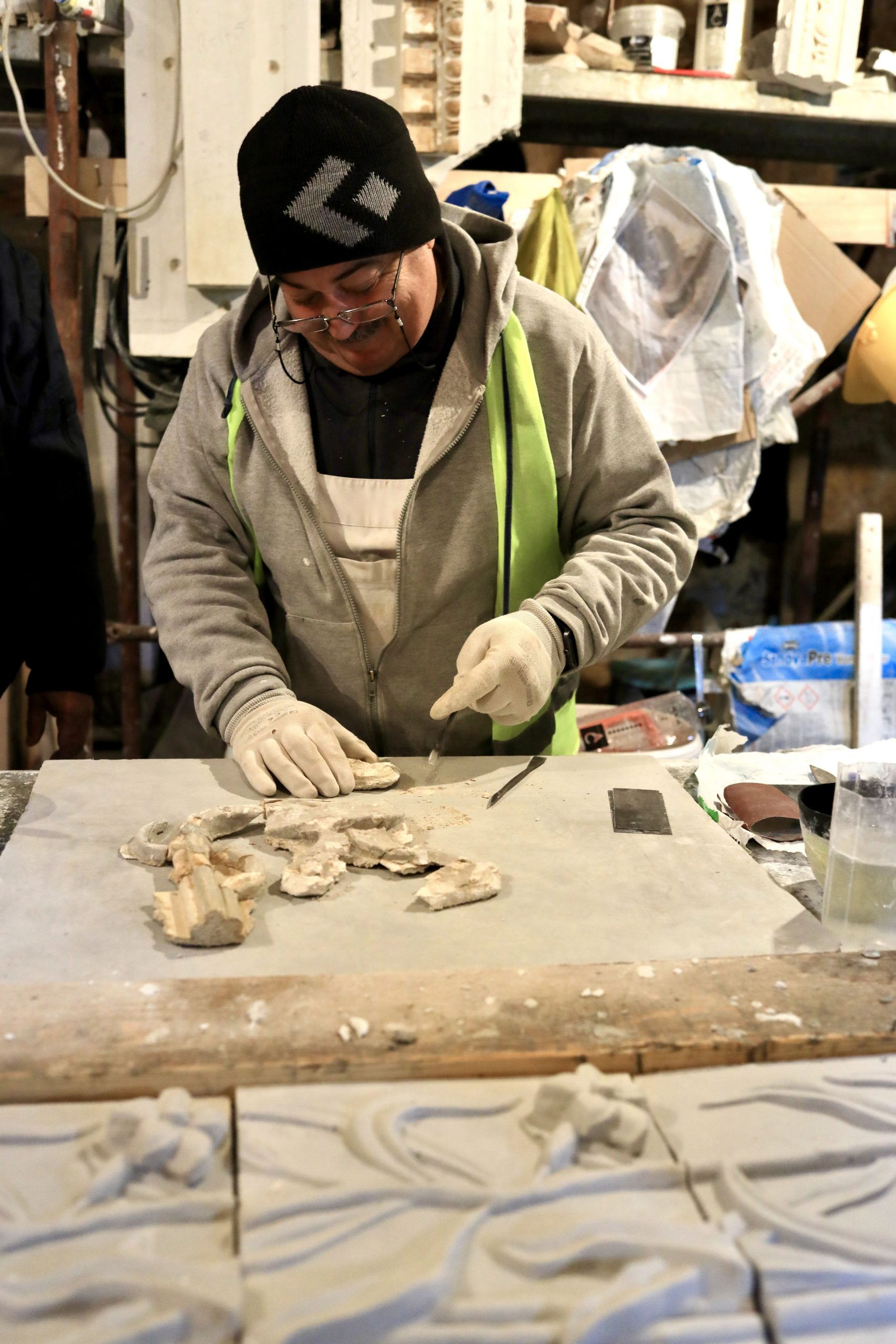 “Au început ultimele lucrări, pardoseli, acoperișul este aproape gata în totalitate, se fac ultimele lucrări la instalațiile electrice, instalații de încălzire, ventilație, deci suntem într-un stadiu destul de avansat. În urmă cu câțiva zeci de ani ca și arhitect a fost Daniel Renard, reprezentant al arhitecturii Art Nouveau. La vremea respectivă a fost singura clădire din România ce a avut simboluri și ornamente în stil Art Nouveau. Clădirea a suferit mai multe reparații de-a lungul timpului. În 1916 la bombardament a fost dărâmat acoperișul. A fost refăcut, apoi în al doilea Război Mondial în 1941 a fost bombardată scara de onoare care a necesitat reparație. A fost refăcută cu ajutorul deținuților politici în anul 1951. Acest lucru nu s-a știut, noi am găsit niște mărturii în pereți, niște scrisori, bucăți de sac pe care erau scrise numele lor și impresiile de la acel moment. Tot ca stadiu de lucrare în 1986 ultima intervenție a fost făcută de către ONT Litoral. Sunt cei care au refăcut această clădire pentru a funcționa ca și restaurant. În ultimii 4 ani, de când am câștigat licitația, s-au refăcut planurile exact cum au fost inițial. Clădirea a fost în totalitate îmbunătățită, de la rezistență la ornamente, acoperiș, candelabre, pardoseli, tot ce veți vedea sunt noi în stilul Art Nouveau”, a declarat Gabi Puchiu – reprezentant Edificia Carpați, șef lucrări Cazinoul Constanța.