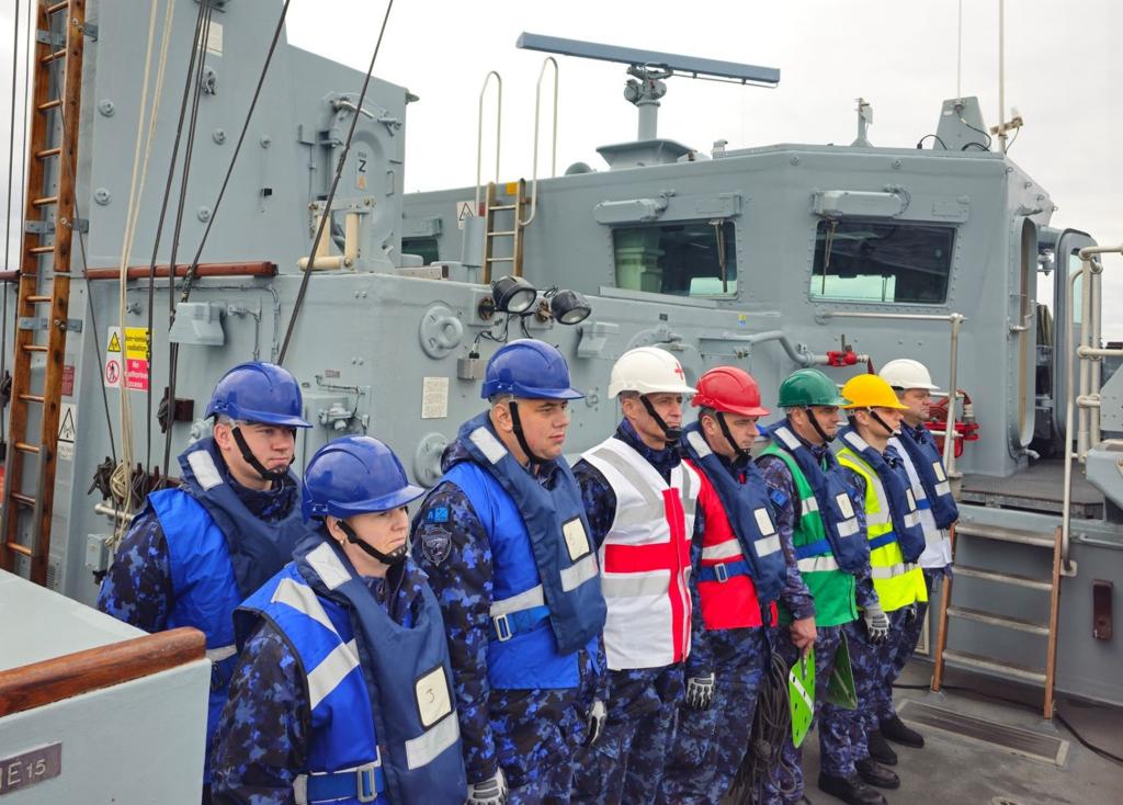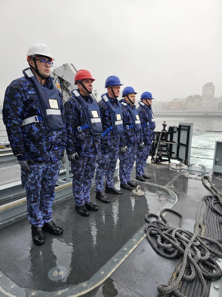 Totodată, marinarii militari de la bord execută, în drumul spre casă, și exersarea rolurilor privind activitățile de asigurare a vitalității navei, de comunicații, de lansare ambarcațiuni, de realimentare pe mare și de remorcaj.