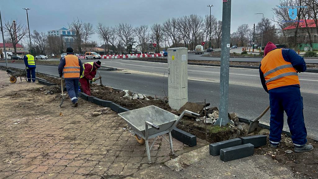 • Pe bulevardul Mamaia, se lucrează la reamenajarea suprafeței pietonale în dreptul sensului giratoriu de la intersecția cu bulevardul Aurel Vlaicu. Se reconfigurează acest tronson prin refacerea scuarului median, se înlocuiesc bordurile, se montează pavele noi și se amenajează scuaruri cu spații verzi.