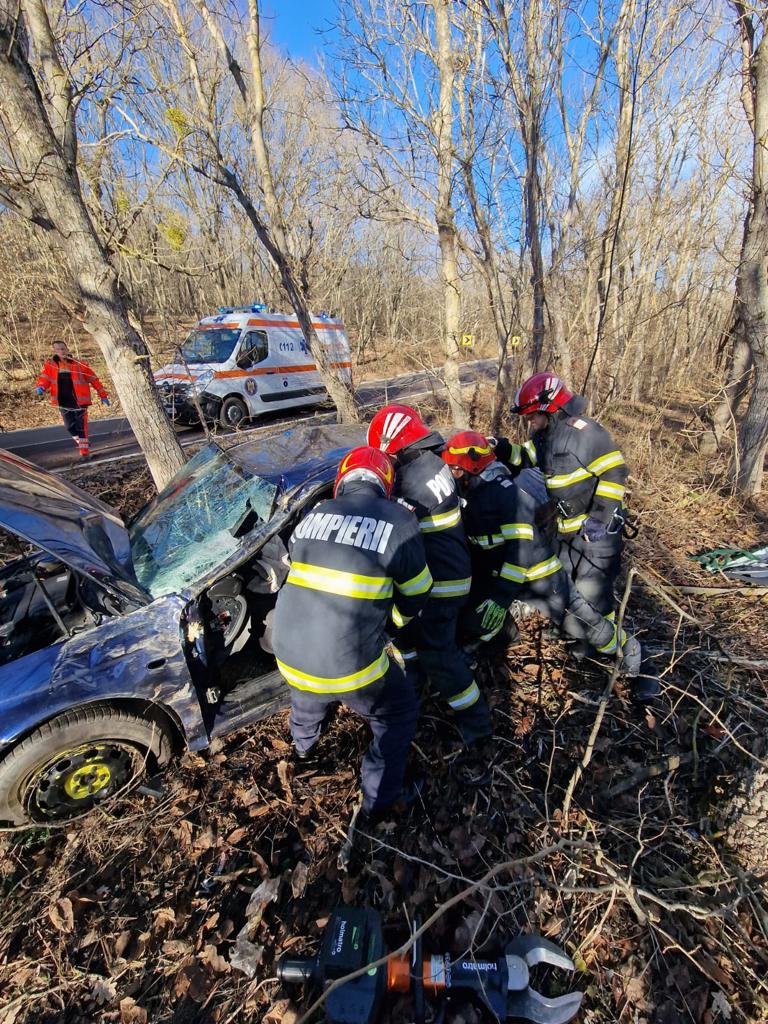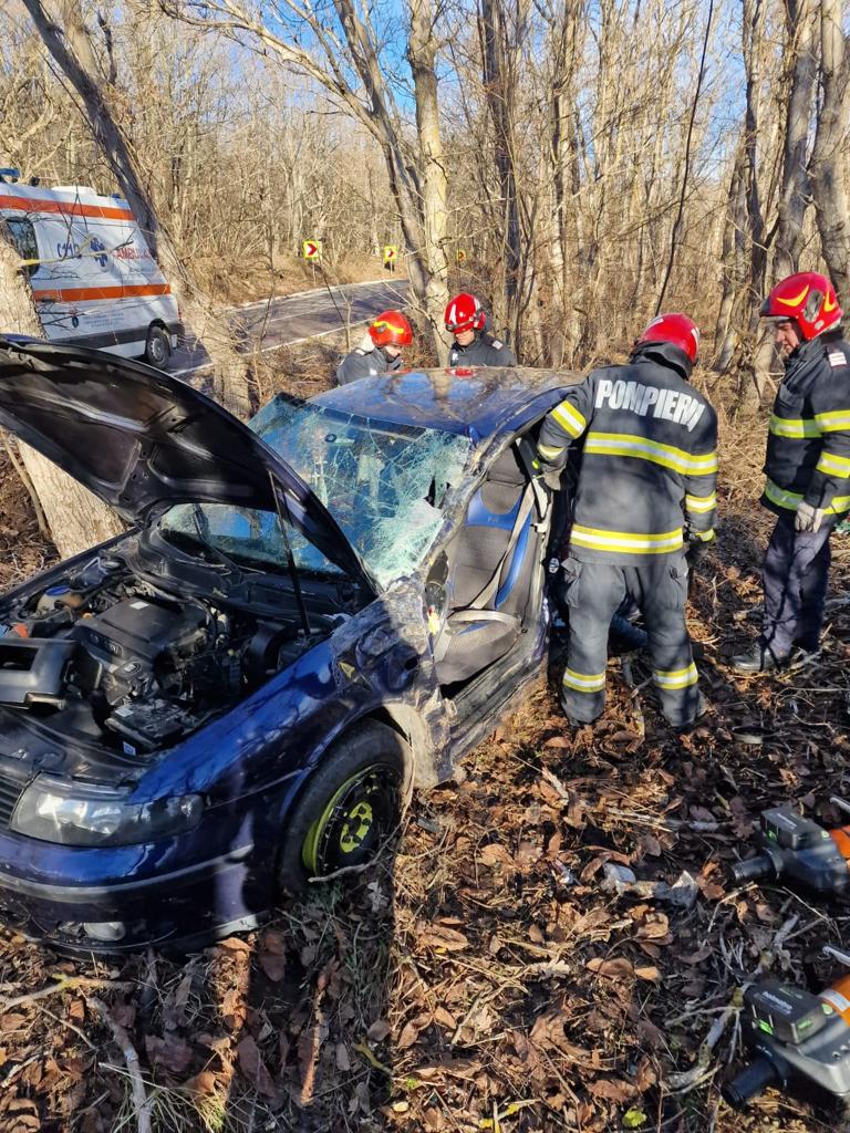 Ajunși la locul evenimentului, pompierii tulceni au constatat că în autoturismul implicat în accidentul rutier se afla o persoană de sex feminin încarcerată pe bancheta din spate.