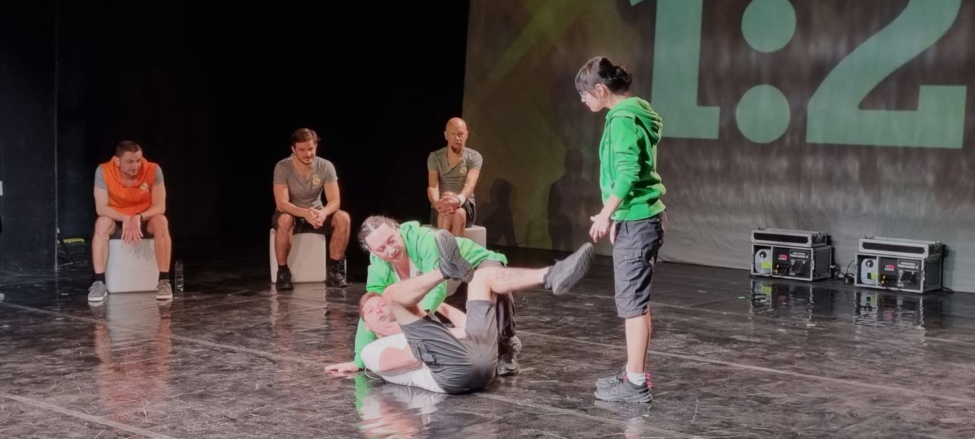 Un spectacol de improvizație de fiecare dată altfel, care nu are un scenariu și nu are un deznodământ cunoscut, pentru că spectatorii sunt cei ce dau ideile de la care actorii pornesc pentru a improviza povești, situații și replici cât mai comice. Și tot spectatorii, prin aplauzele lor, decid care dintre cele două echipe ce se confruntă pe scenă este câștigătoarea „meciului”.