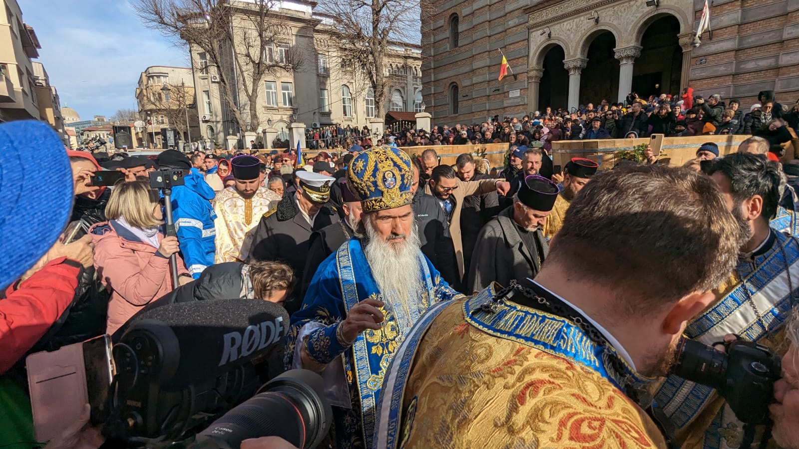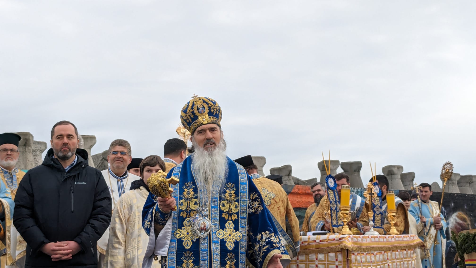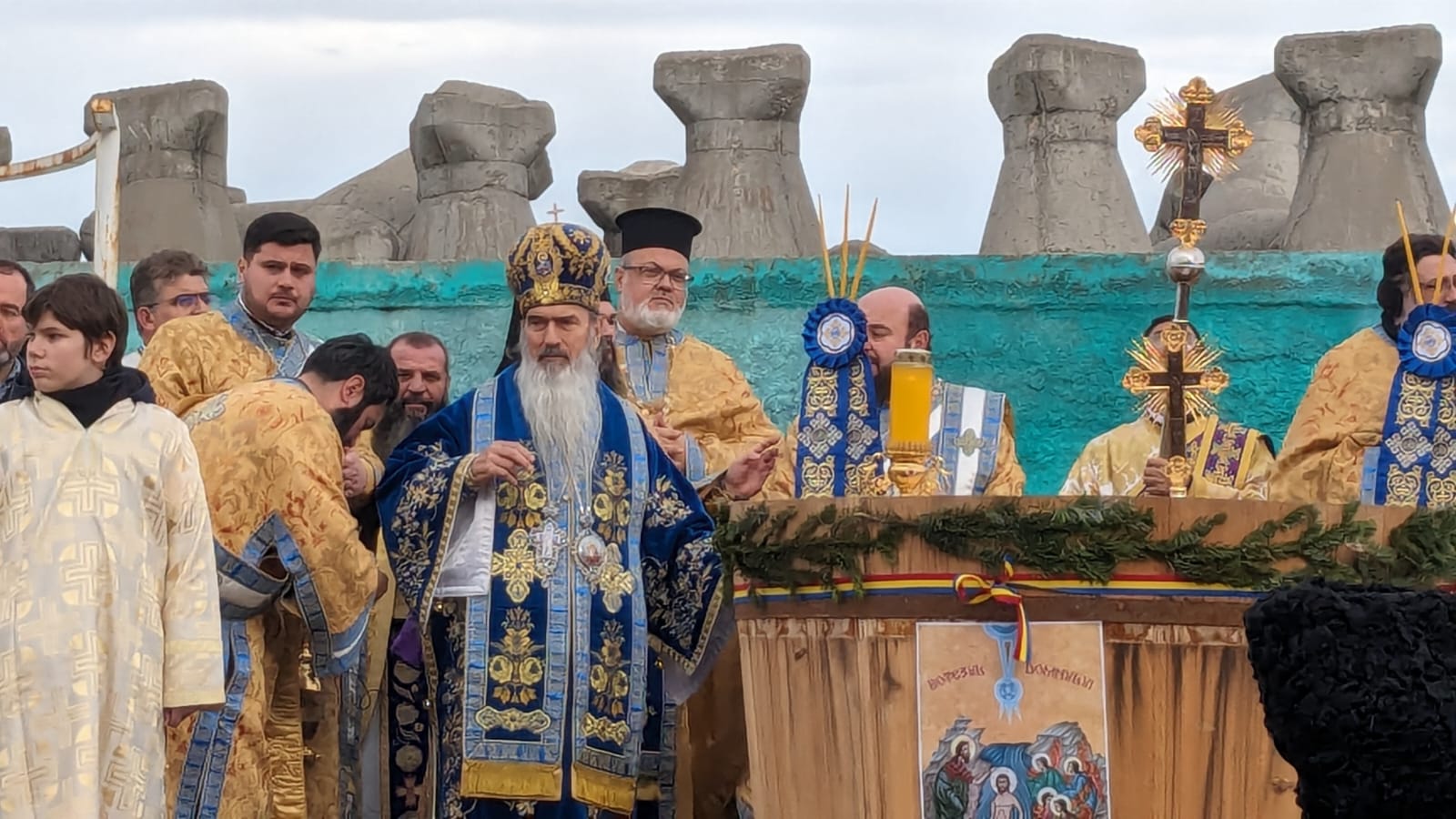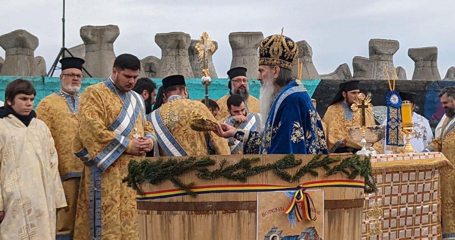 “Ziua de Bobotează a anului 2024! Neobișnuit de caldă, dar e darul lui Dumnezeu și soarele și luna și stelele, cum spune rugăciunea și căldura și frigul. Noi nădăjduim să vină iarna după aceste zile, dar acum ne bucurăm de sfințenie. Sfințenia acoperă toate anotimpurile și apa sfințită este un mare dar de la Dumnezeu pentru că înnoiește acest dar în fiecare an și cum spune rugăciunea, pământul și marea își împart bucuria. Să ne bucurăm și noi astăzi, după ajunarea de ieri, astăzi avem dezlegare la bucuria bucatelor după ce am luat apa sfinţită. Să luăm în fiecare an, să simțim fiorul credinței când luăm apa sfințită, pentru că este plină de darurile Sfântului Duh, de aceea nici nu se strică niciodată. Vă doresc tuturor celor ce participați cu sufletul și cu dragostea de Dumnezeu și de semeni la această sărbătoare, să simțiți fiorul bucuriei și al prezenței Duhului Sfânt. Sărbătoare să fie în sufletul fiecărui român. La mulți ani! Să trecem anul cu această apă sfințită și să ne întâlnim cu ea și în anul viitor, pe 5 şi pe 6 ianuarie, în 2025”, a spus Arhiepiscopul Tomisului.