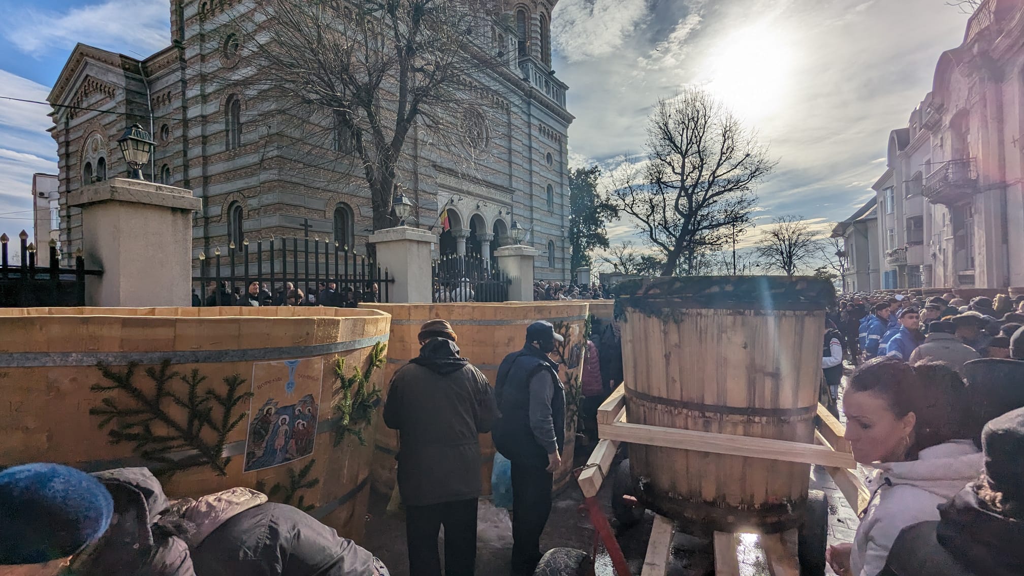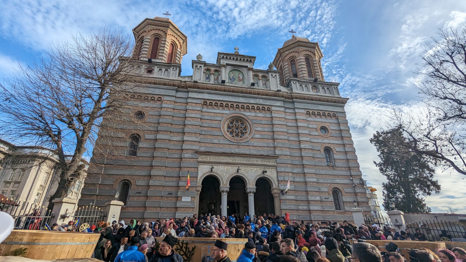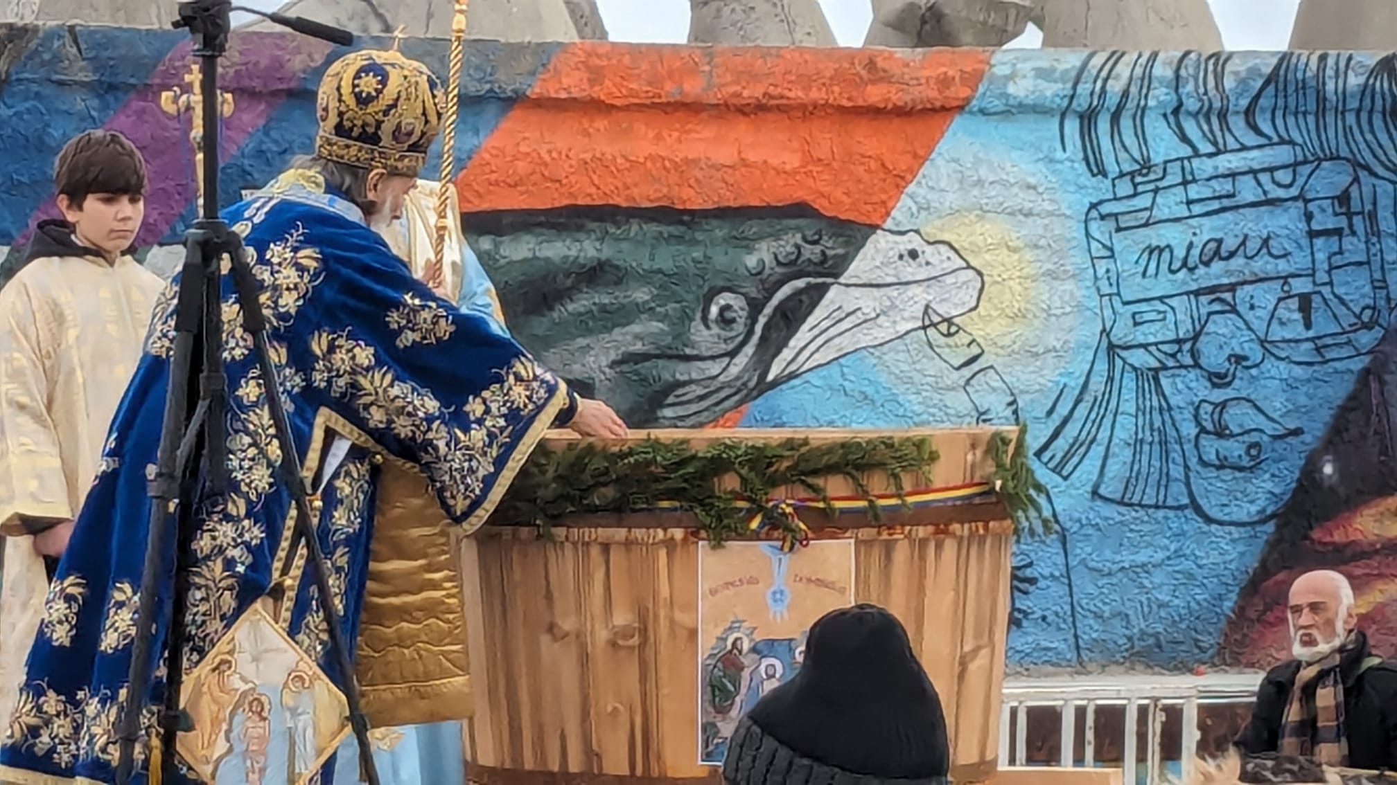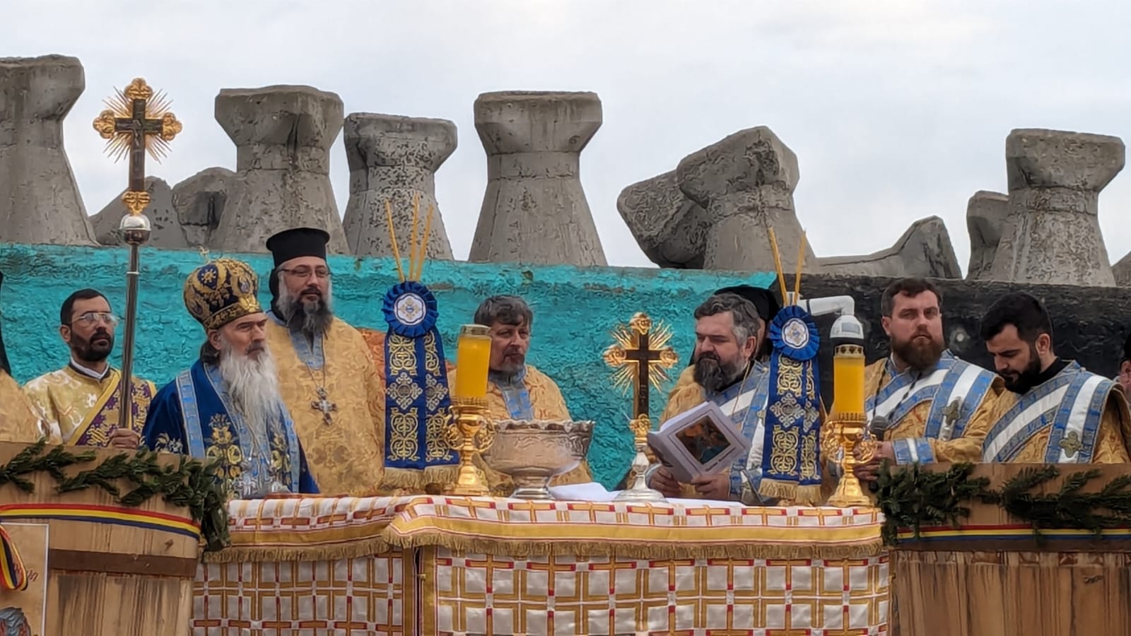 “Ziua de Bobotează a anului 2024! Neobișnuit de caldă, dar e darul lui Dumnezeu și soarele și luna și stelele, cum spune rugăciunea și căldura și frigul. Noi nădăjduim să vină iarna după aceste zile, dar acum ne bucurăm de sfințenie. Sfințenia acoperă toate anotimpurile și apa sfințită este un mare dar de la Dumnezeu pentru că înnoiește acest dar în fiecare an și cum spune rugăciunea, pământul și marea își împart bucuria. Să ne bucurăm și noi astăzi, după ajunarea de ieri, astăzi avem dezlegare la bucuria bucatelor după ce am luat apa sfinţită. Să luăm în fiecare an, să simțim fiorul credinței când luăm apa sfințită, pentru că este plină de darurile Sfântului Duh, de aceea nici nu se strică niciodată. Vă doresc tuturor celor ce participați cu sufletul și cu dragostea de Dumnezeu și de semeni la această sărbătoare, să simțiți fiorul bucuriei și al prezenței Duhului Sfânt. Sărbătoare să fie în sufletul fiecărui român. La mulți ani! Să trecem anul cu această apă sfințită și să ne întâlnim cu ea și în anul viitor, pe 5 şi pe 6 ianuarie, în 2025”, a spus Arhiepiscopul Tomisului.