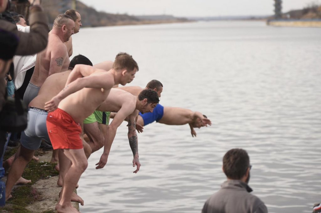 La Medgidia, de Bobotează, zece tineri s-au aruncat în apă să prindă crucea