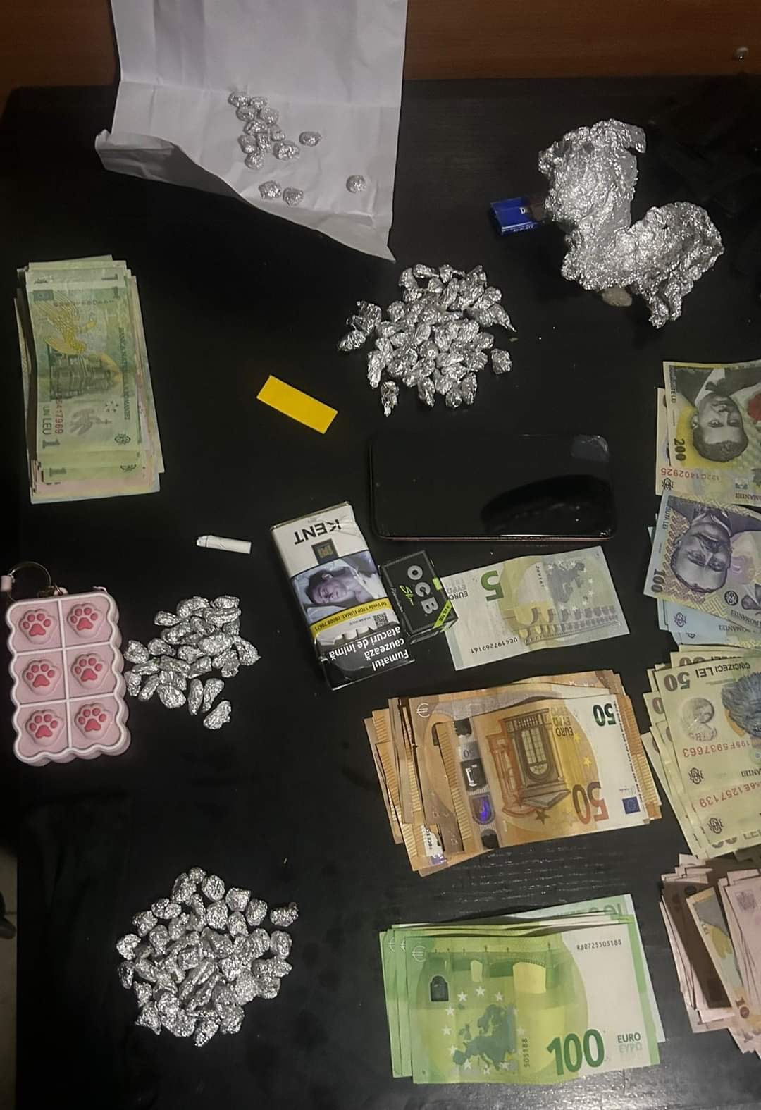 Cei trei au fost conduși la sediul Jandarmeriei, unde au fost percheziționați, găsindu-se și asupra unuia dintre bărbați alte 59 de bile de staniol cu substanța în cauză (o parte dintre ele ascunse în lenjeria intimă), precum și importante sume de bani, respectiv 3500 de lei și 2000 de euro.