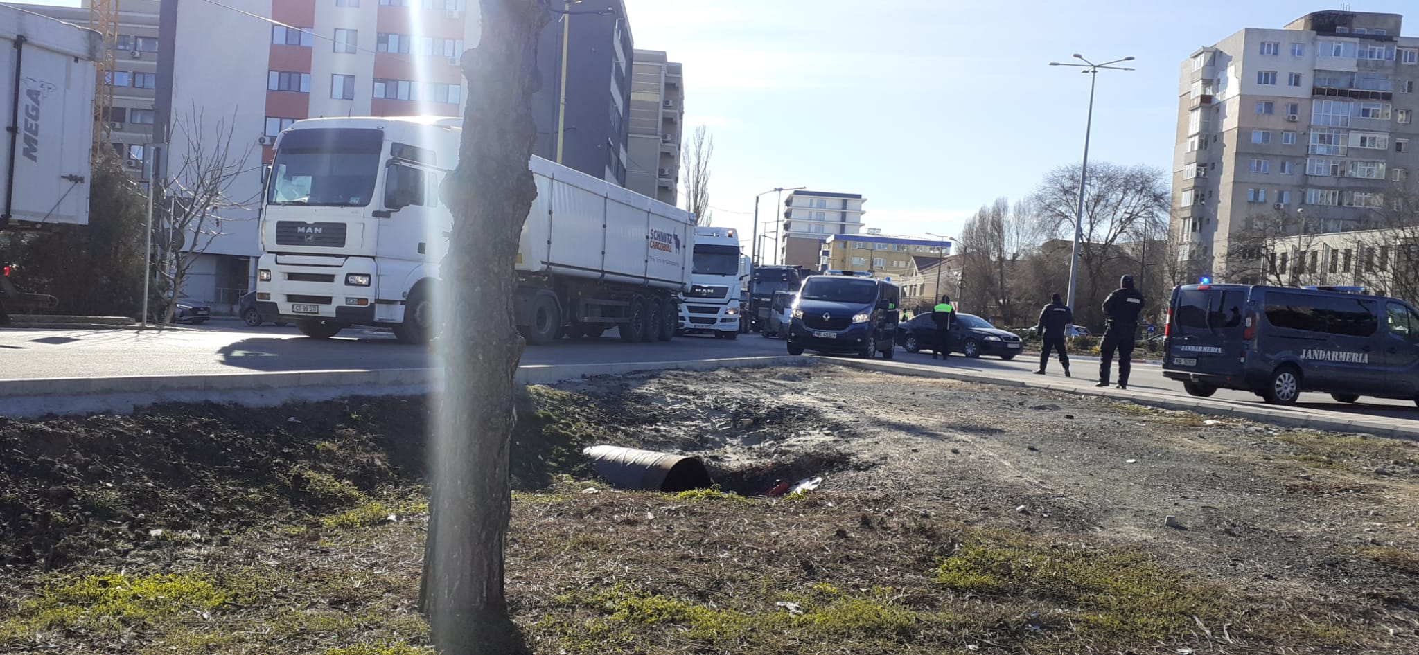 În acest moment, sensul giratoriu de la Doraly din Constanța este blocat. Camioanele se îndreaptă spre zona CET. Protestul afectează și autobuzele de pe liniile 5-40, 5B, 13, 101 și 101M.