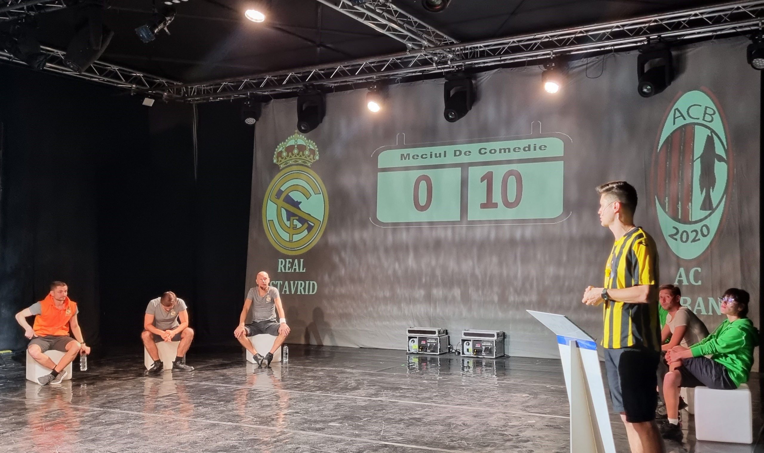 Din distribuția reprezentației din acest weekend fac parte Mirela Pană, Ecaterina Lupu, Andrei Cantargiu, Cătălin Bucur, Remus Archip, Florin Aioane, Ștefan Mihai, Vlad Lință, Andrei Bibire și doi invitați speciali, Delia Riciu și Sever Bârzan, actori cu o foarte bogată experiență în spectacole de improvizație. Vlad Pasencu este cel care îi va acompania live pe actori, improvizând muzica pentru fiecare fază a meciului.