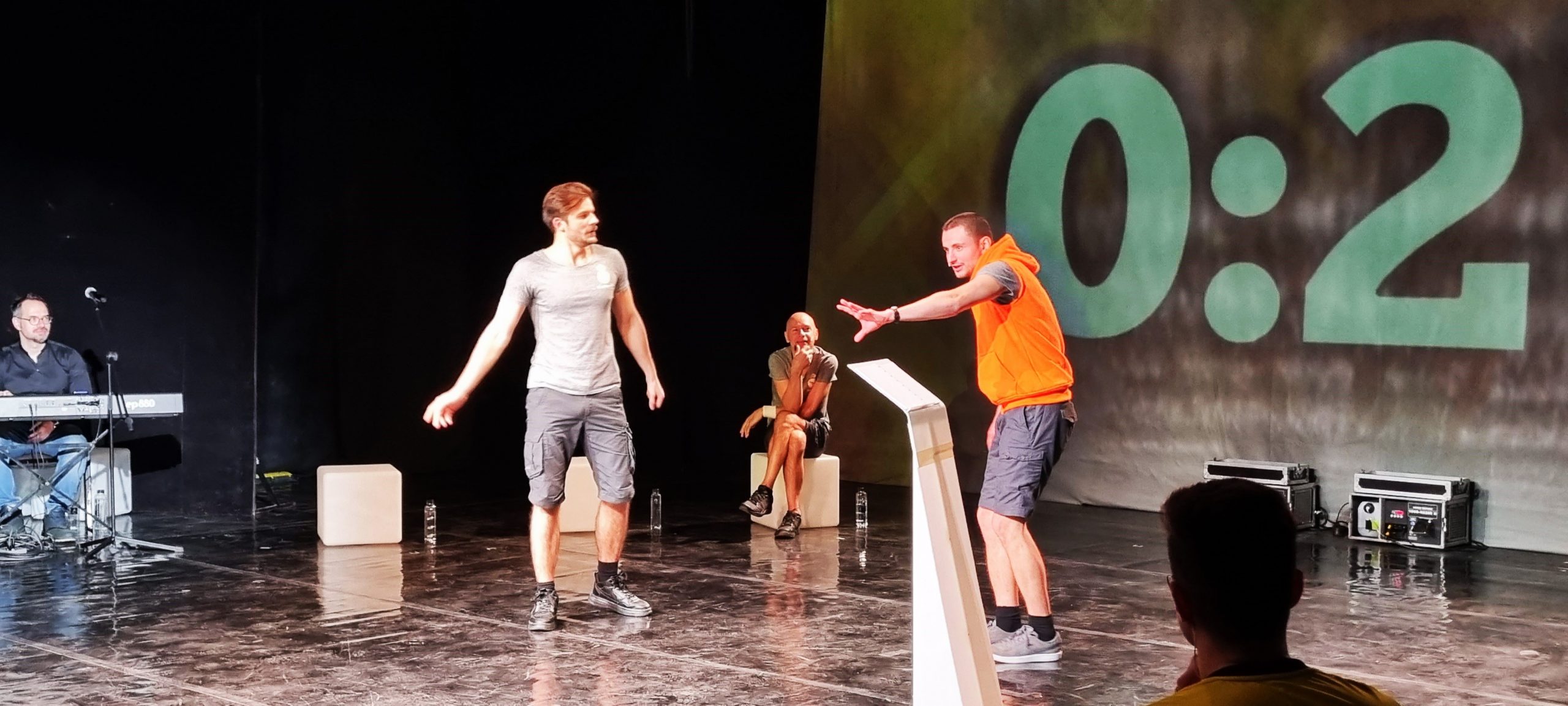 Vlad Pasencu este cel care îi va acompania live pe actori, improvizând muzica pentru fiecare fază a meciului.