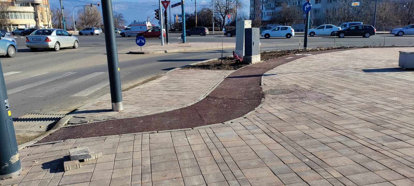 La intersecțiile cuprinse în proiectul care vizează bulevardul 1 Mai și Șoseaua Mangaliei, bordurile sunt înalte și îngreunează circulația bicicliștilor: