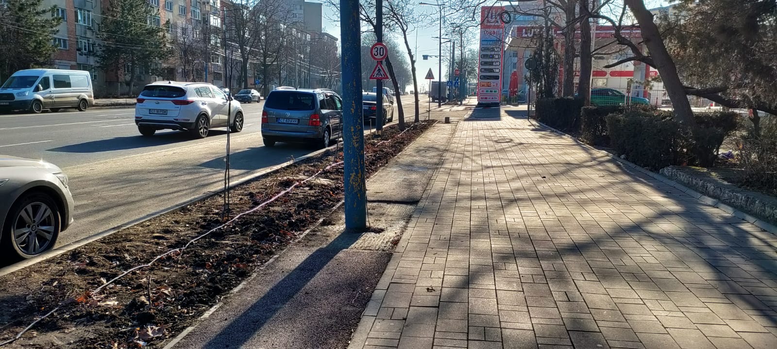Pista de biciclete pe Bulevardul 1 Mai și Șoseaua Mangaliei nu arată chiar rău. Spre surprinderea noastră, arată chiar foarte bine, adică nu e plină de denivelări, cum sunt alte piste din orașul Constanța. Dezamăgitor este că încă există stâlpii vechi, pe pista veche, și aici ar fi trebuit să fie deja scoși de mult timp.