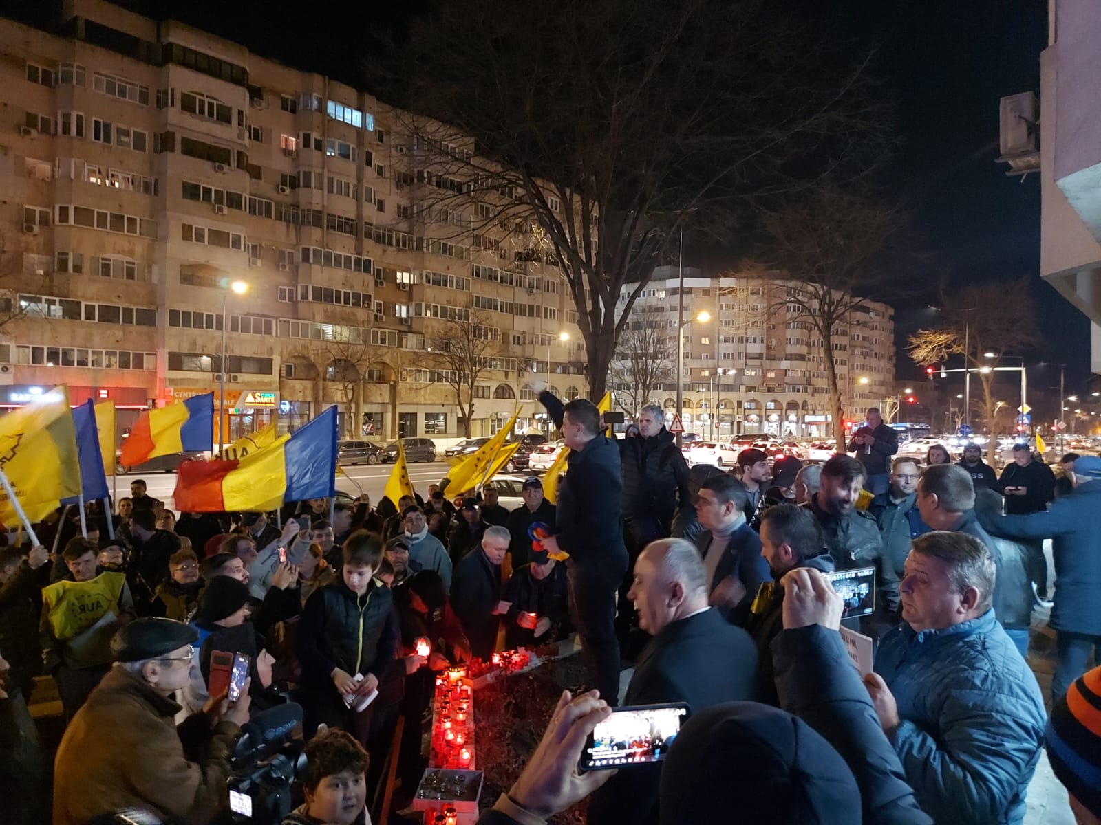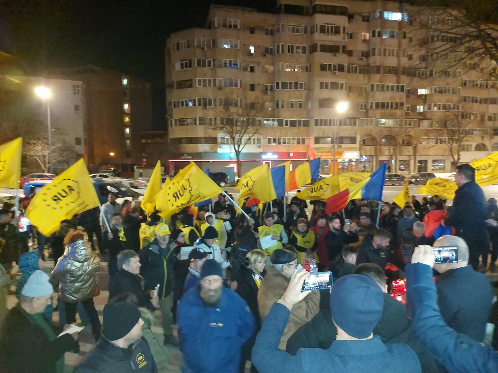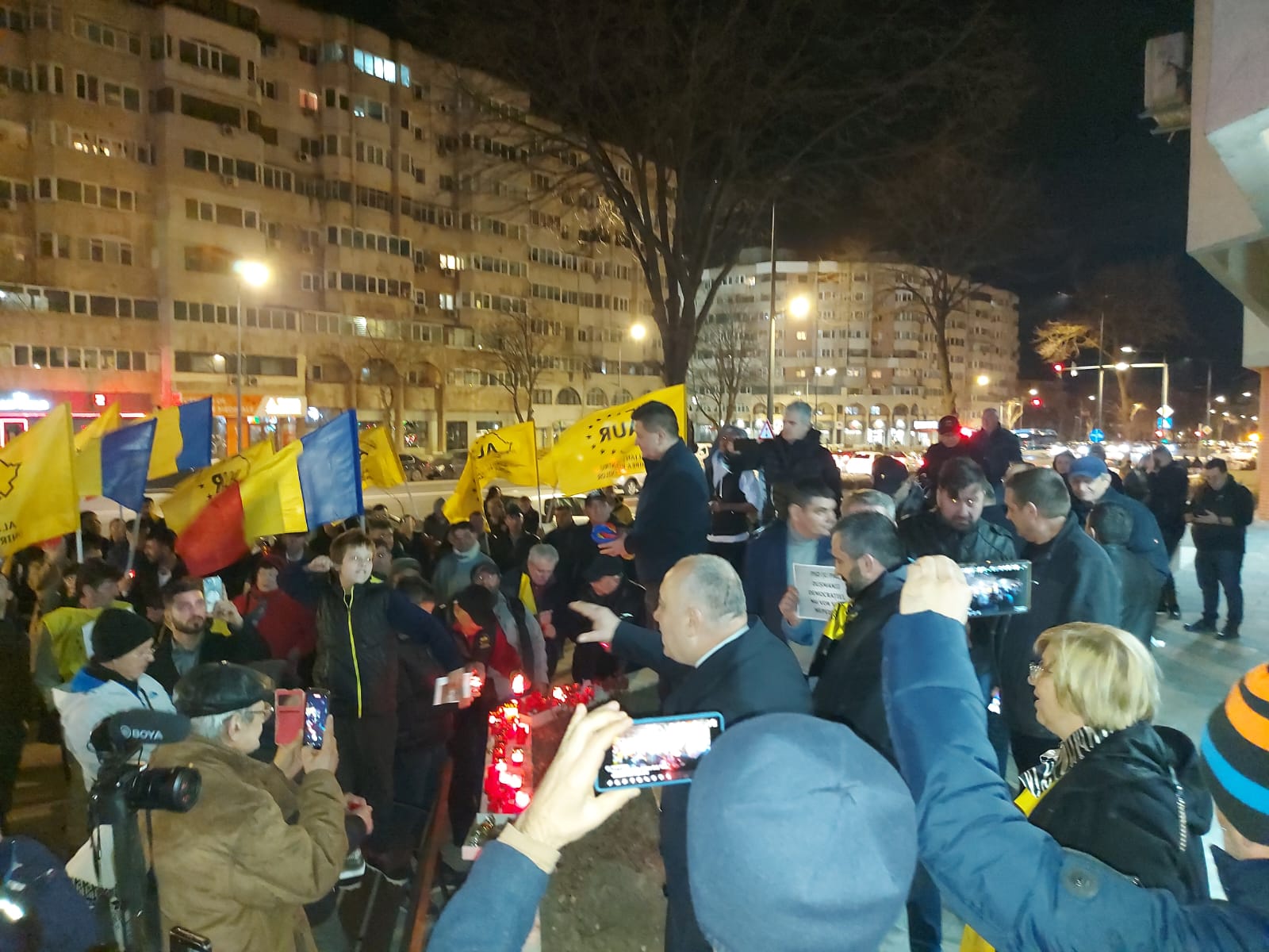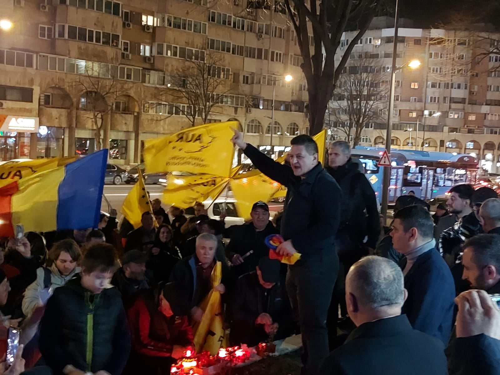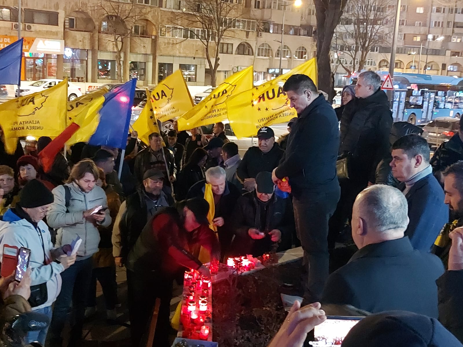 Reprezentanți ai Alianței, alături de 150 de simpatizanți, au aprins lumânări în fața sediului PSD, au purtat drapelul României, steaguri cu sigla AUR şi au scandat „Nu vrem să fim conduşi de hoţi!”, „Vrem dreptate, nu comasate!”, „Vrem alegeri libere!”