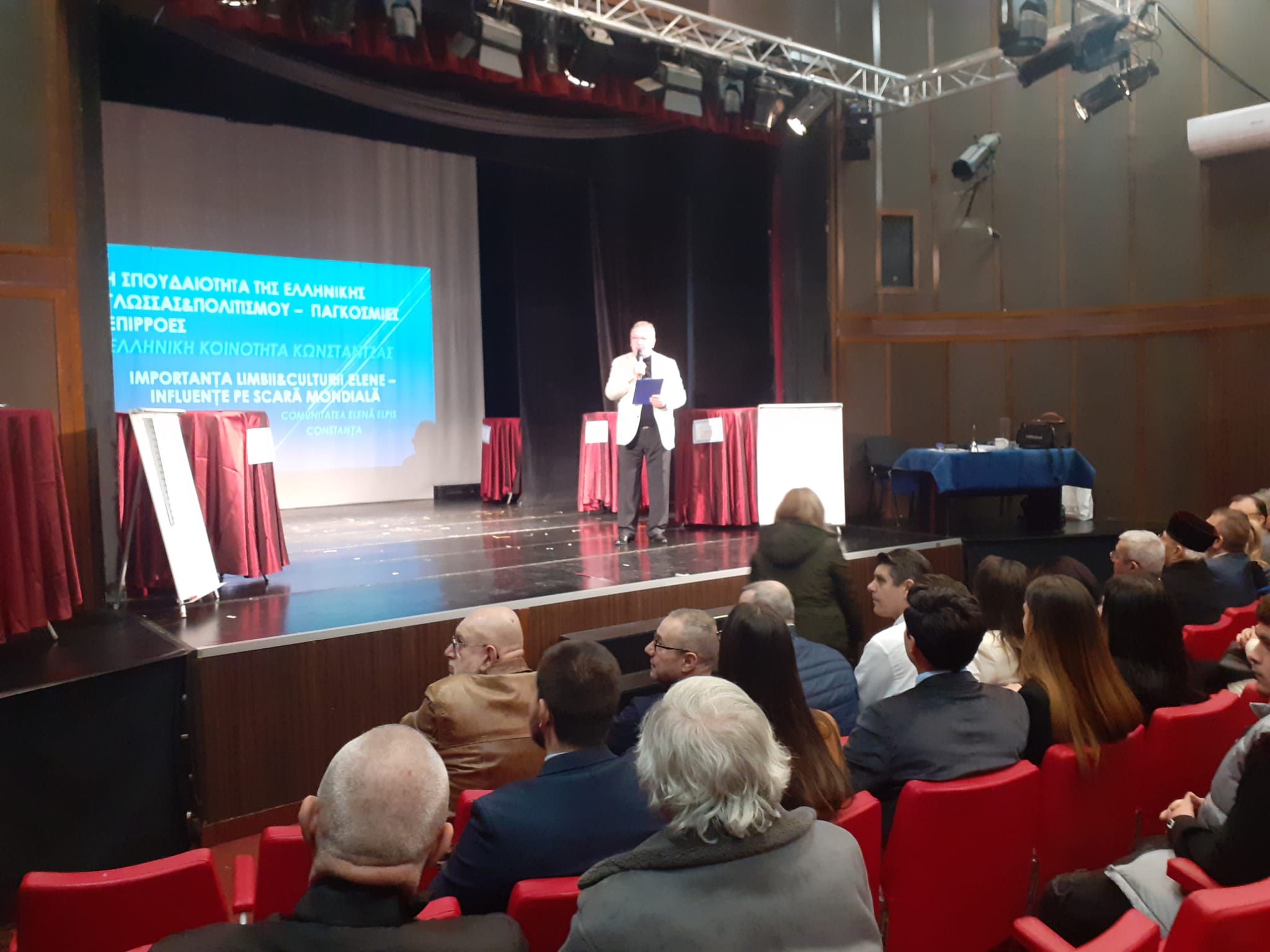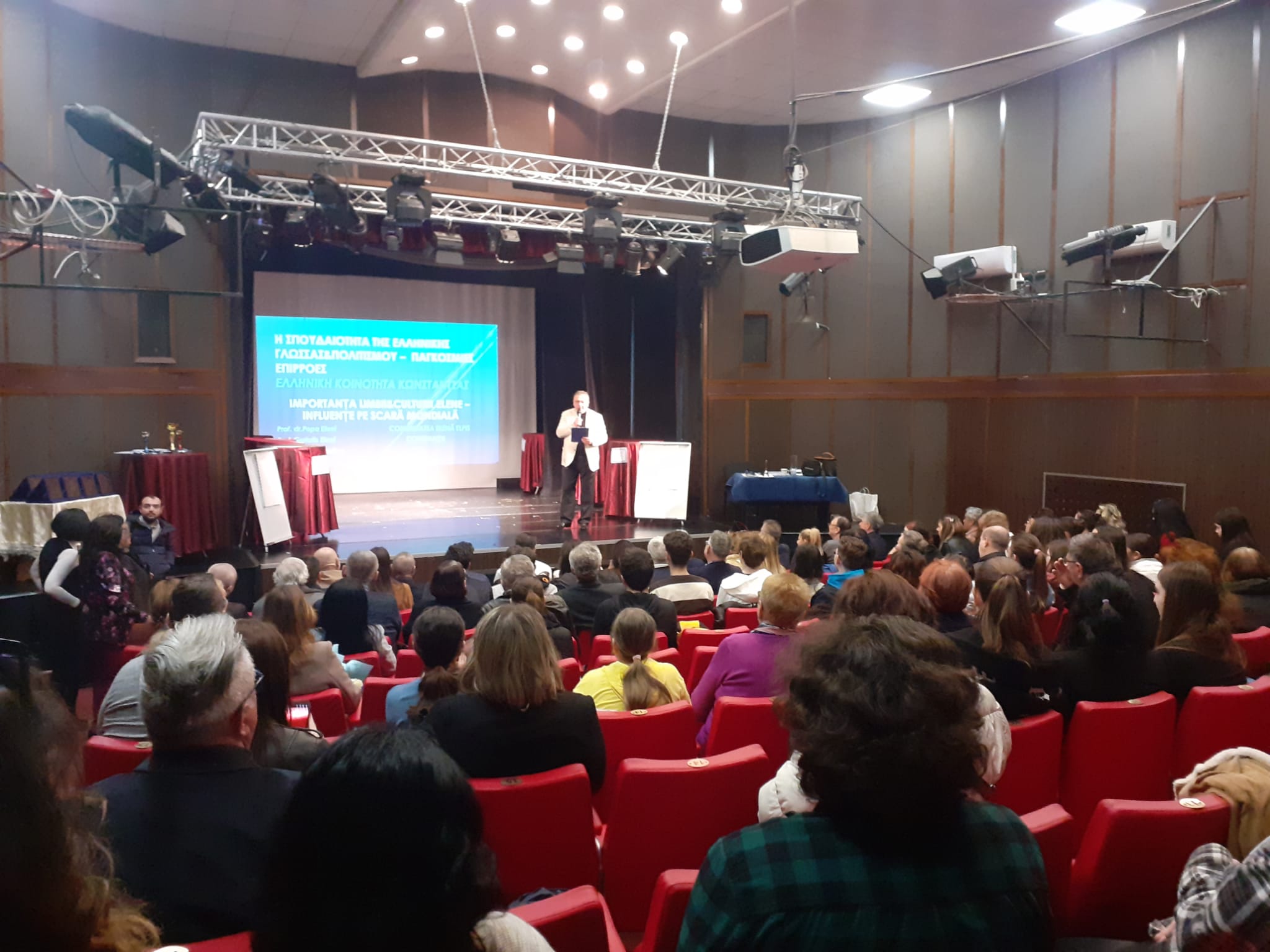 Cei care au umplut sala Teatrului Elpis au aflat de la dr. Constantin Cheramidoglu, cum a ajuns limba elenă în cetatea Tomis.