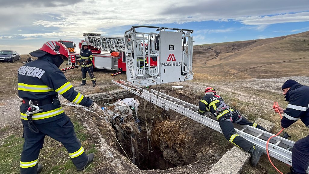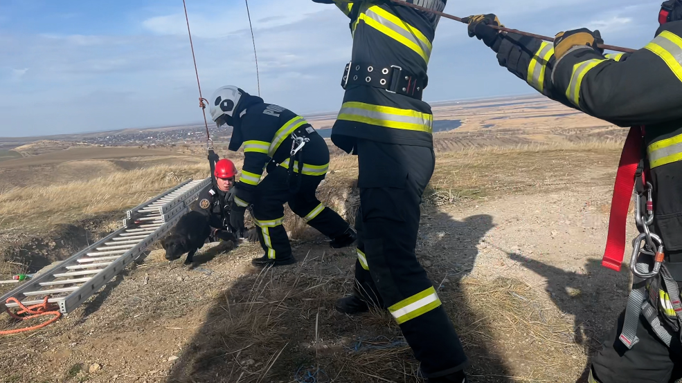 FOTO | TULCEA: Cățel salvat de pompieri dintr-o groapă adâncă de 30 de metri