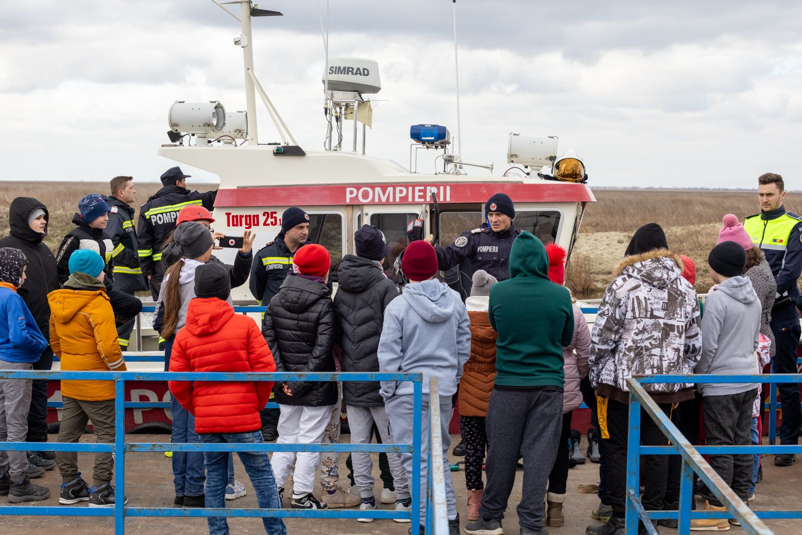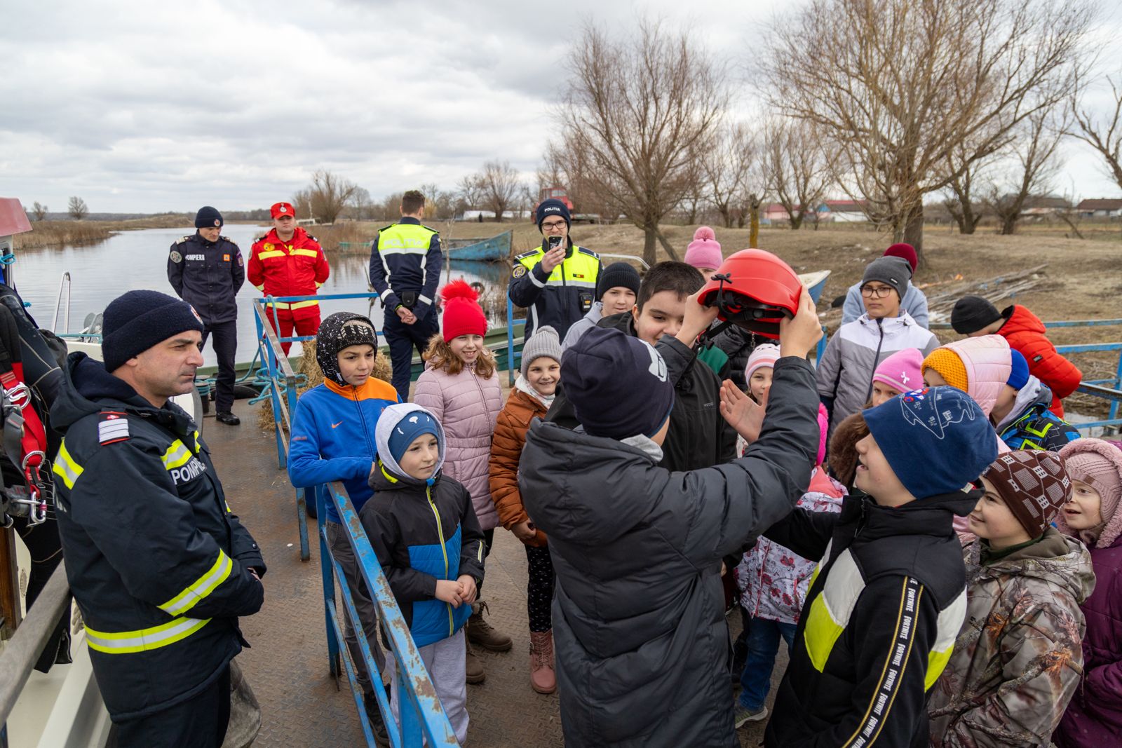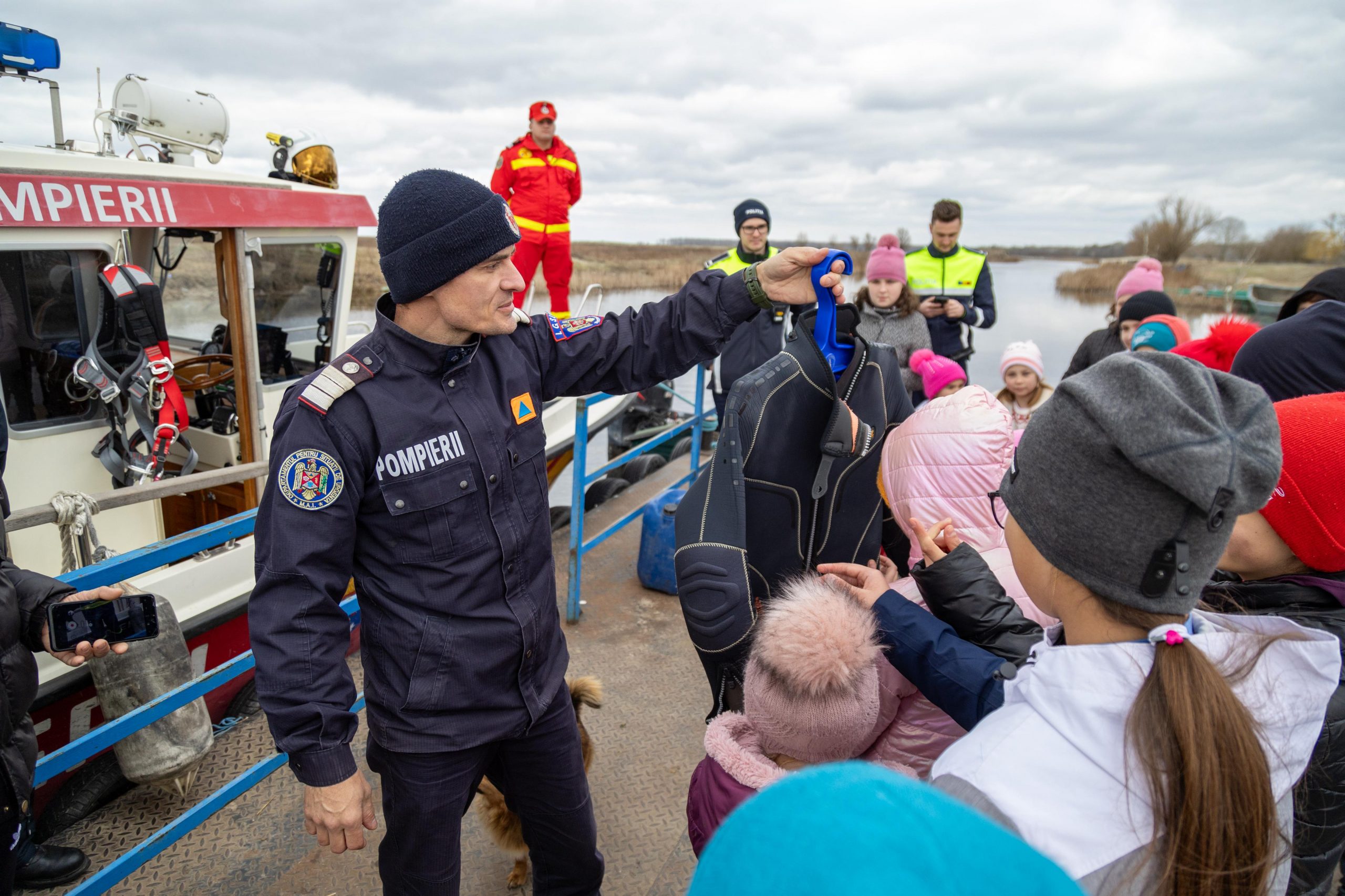 Pompierii militari ai ISU Tulcea răspund prezent nu doar în situațiile de urgență, ci și la solicitările copiilor din zonele izolate ale județului, așa cum este și Delta Dunării.