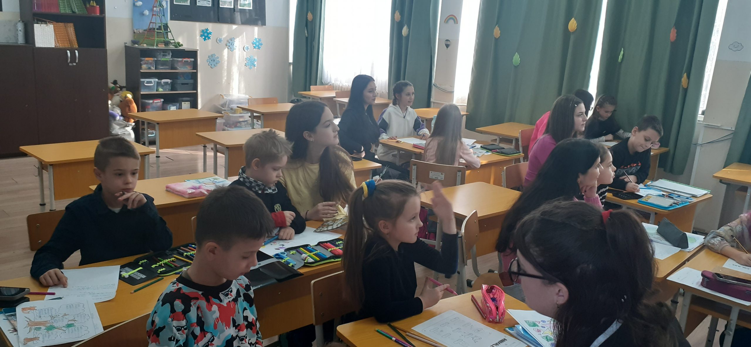Ce se întâmplă astăzi la noi în școală este de fapt o prelungire a ceea ce se întâmplă cu școala noastră de aproape 2 ani, pentru că încă din octombrie 2022 școala a găzduit refugiați ucraineni în diverse forme, fie ca audienți, fie în hub, ei venind și aprofundând orele pe care le fac online în școala noastră cu program de după-amiază de la ora 12:00 sau 13:00 până la 16:00 sau 17:00. Dar pe lângă ei, la cursurile de limbă română participă și copii care provin din Turcia, sirieni și mai nou avem un copil italian. Învață limba română, învață să trăiască în România, un lucru care este destul de important pentru că știm că pe lângă limbă, trebuie să cunoști și eu obiceiurile țării în care locuiești, în așa fel încât să nu faci greșeli.