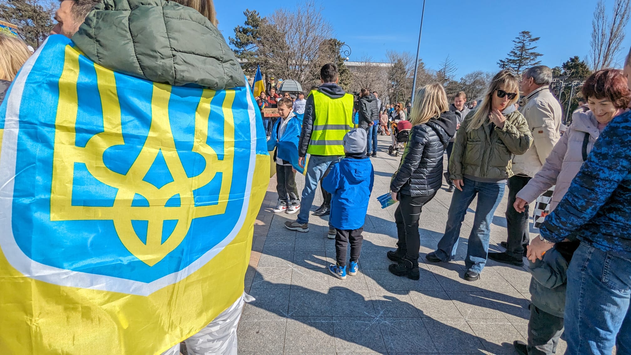 Mitingul dedicat celei de-a doua comemorări a invaziei este deja a patra acțiune de protest a ucrainenilor din Constanța, spun organizatorii: De fiecare dată când decidem să organizăm o acțiune de protest împotriva războiului sângeros, suntem convinși că va fi ultima dată. Dar se dovedește altfel. O altă participantă la acțiunea de protest, Nadiia (din Druzhkivka, regiunea Donețk) nu poate, nici ea, să se întoarcă acasă: Visăm ca armata rusă să părăsească Ucraina, să părăsească regiunea Donețk, astfel încât orașul meu natal să nu mai fie practic pe linia frontului sau, Doamne ferește, să fie capturat și distrus, ca de curând Avdiivka, care se află la doar 80 km de casa noastră, sau ca anterior cu același destin Bahmut, care este situat la doar 40 km de casa mea.