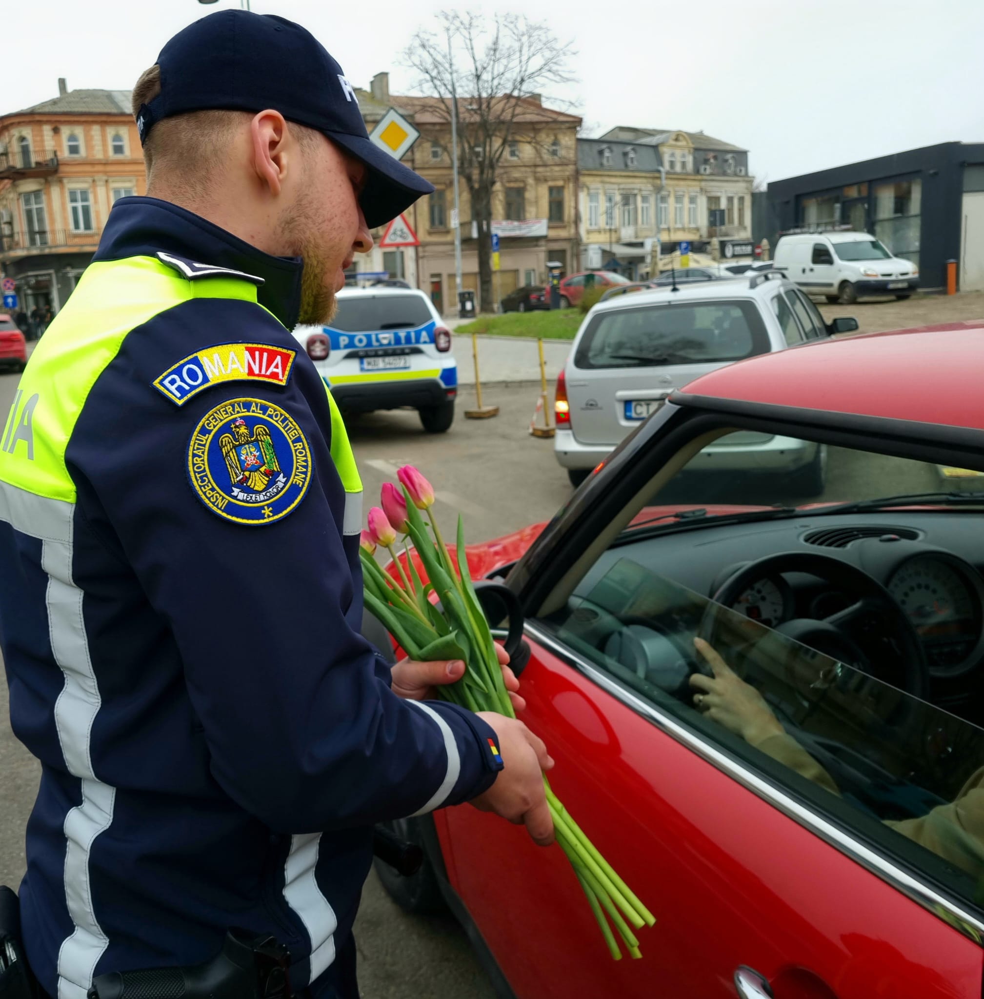 Înarmați cu flori și răspândiți pe principalele artere de circulație din municipiul Constanța, polițiștii le-au tras pe dreapta pe conducătoarele auto, dar nu pentru a le cere documentele la control, ci pentru a le oferi flori și un gând bun de 1 Martie.