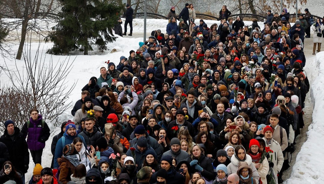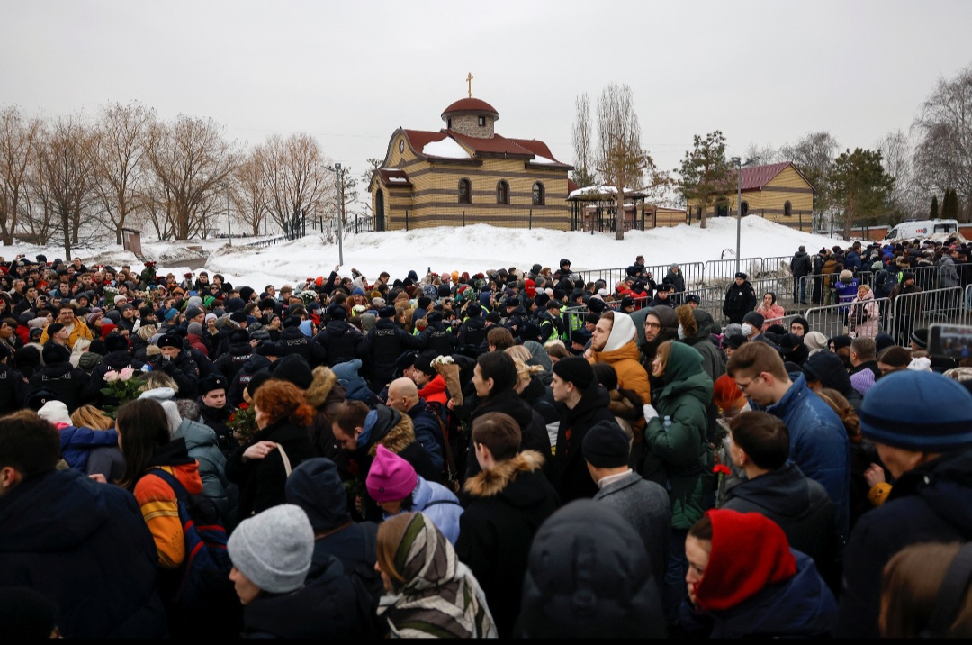 Înainte de slujba religioasă, lângă biserica din cartierul Mariino din sud-estul Moscovei, unde a locuit Aleksei Navalnîi, s-a adunat o mulţime de câteva mii de oameni, formând un şir foarte lung pe trotuare. Importante dispozitive ale trupelor speciale au fost desfăşurate în zonă, forţele de ordine împânzind întreaga zona cu bariere de protecţie metalice.