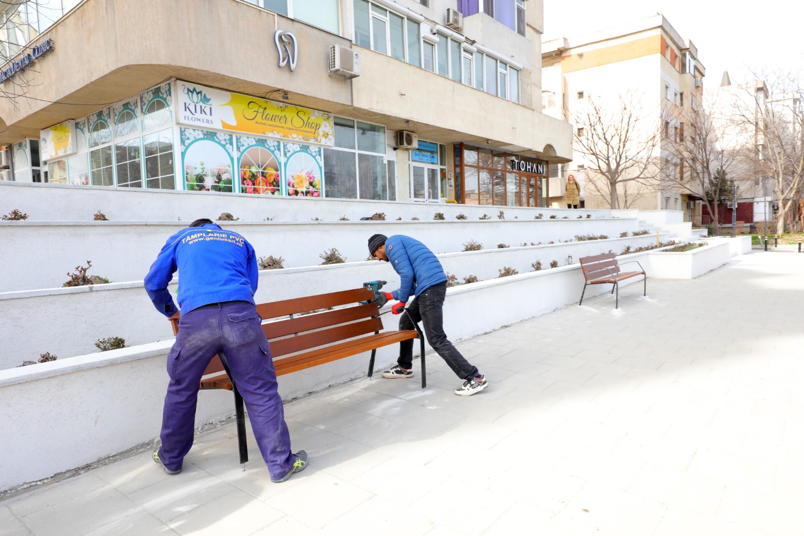 Pe de altă parte, Serviciul Dotări Urbane montează zilele acestea bănci și coșuri de gunoi pe bulevardele Alexandru Lăpușneanu, 1 Decembrie 1918, 1 Mai, șoseaua Mangaliei. Cele mai multe dintre ele sunt amplasate în zone de recreere cum ar fi piațeta din zona Dacia, proaspăt reabilitată, piațeta din zona ICIL, dar și de-a lungul bulevardelor menționate.